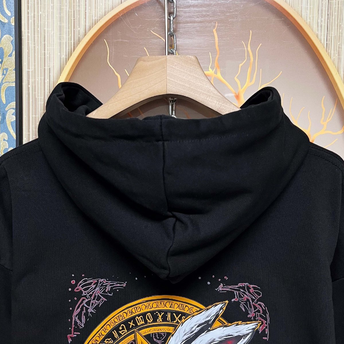 シルエットは、ゆったりとしたオーバーサイズ設計。リラックス感がありながらも、スタイリッシュな印象に仕上がっています。シンプルなボディに映えるのは、後に大胆にあしらった存在感あるモチーフ。カジュアルでありながら、街中でも目を引く、さりげない主張を演出します。