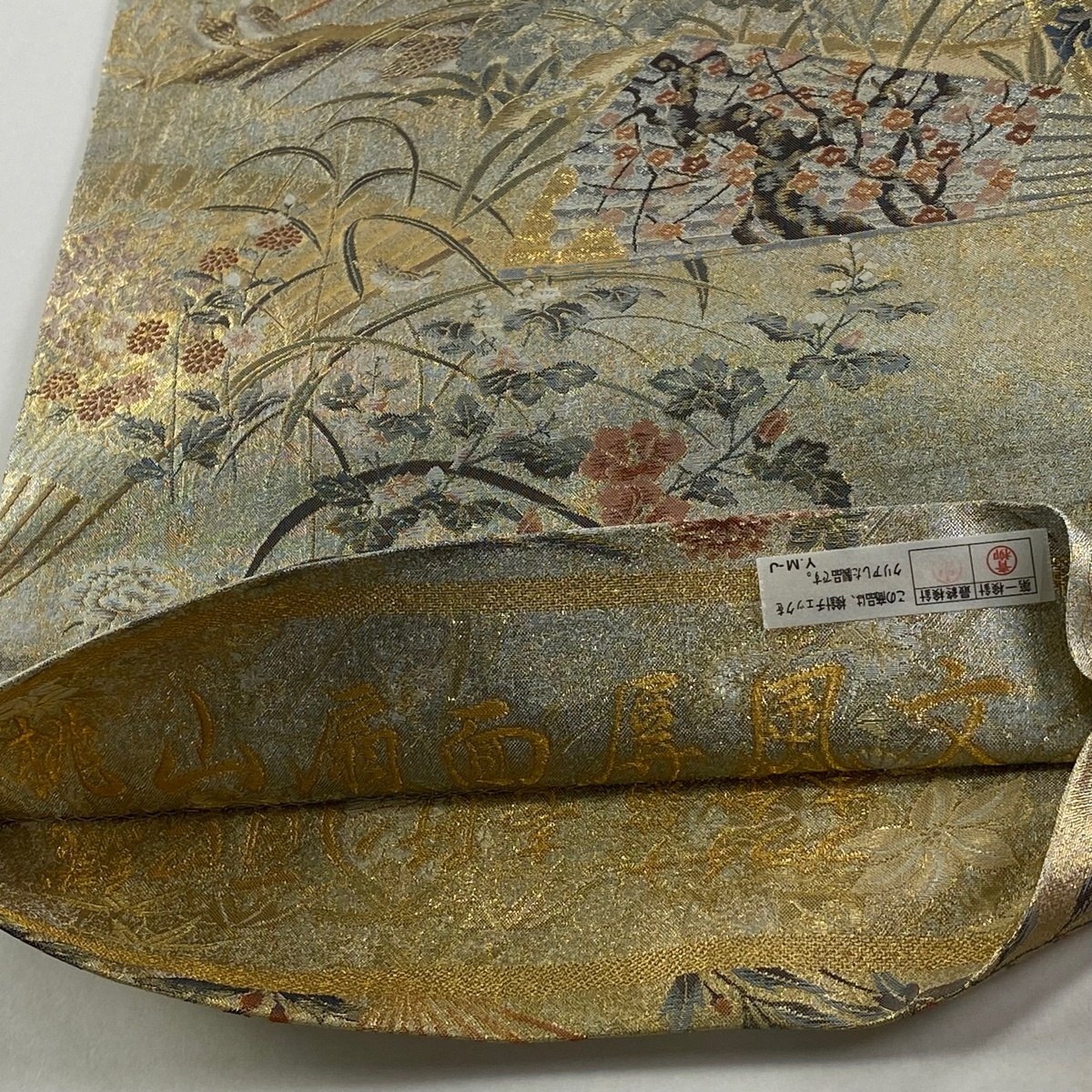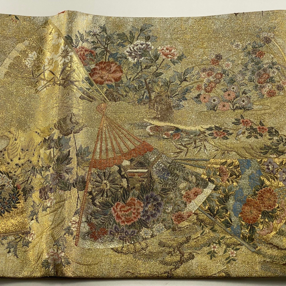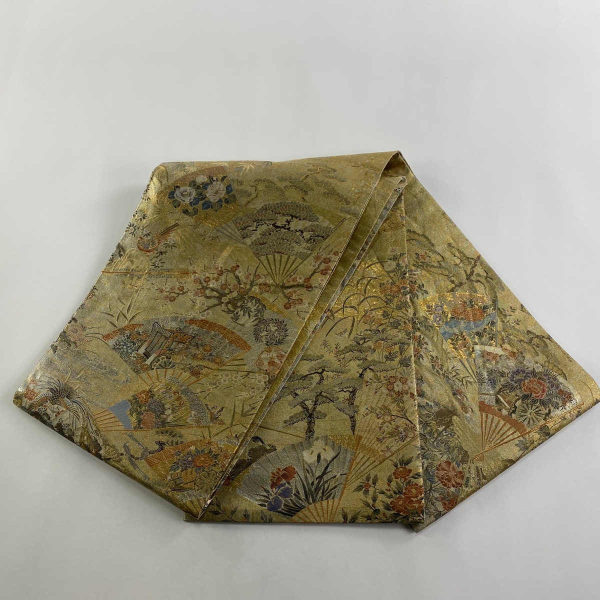 丸帯 美品 名品 プラチナ本金箔 壱阡八百口織 桃山扇面屏風文 金色 お太鼓柄 正絹 【中古】 |