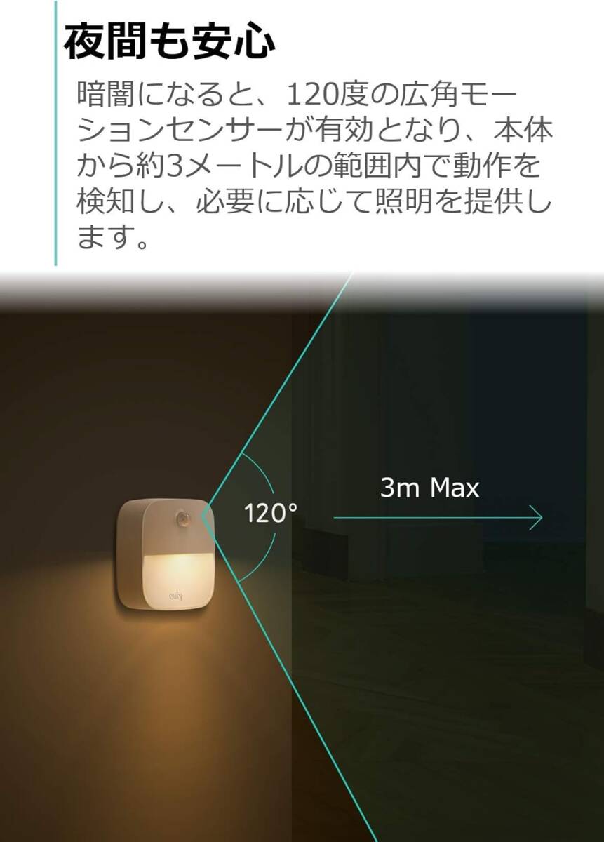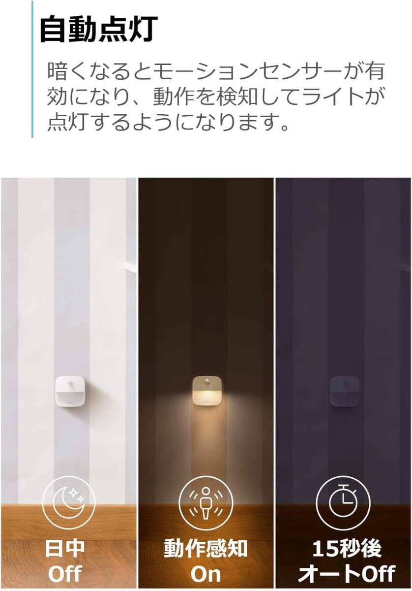 ・自動点灯:暗くなるとモーションセンサーが有効になり
