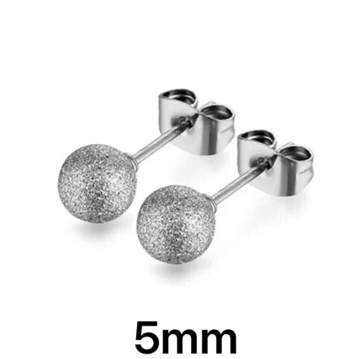 お肌に優しいステンレス製のフロストボールピアスです。ユニセックスデザインの、シンプルな5mmのボールがさりげなくきらりと光って綺麗です。
