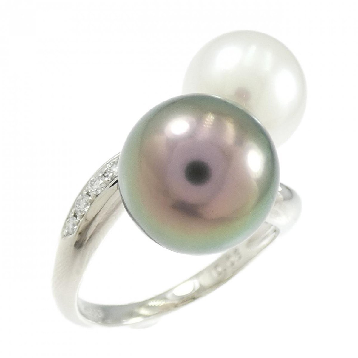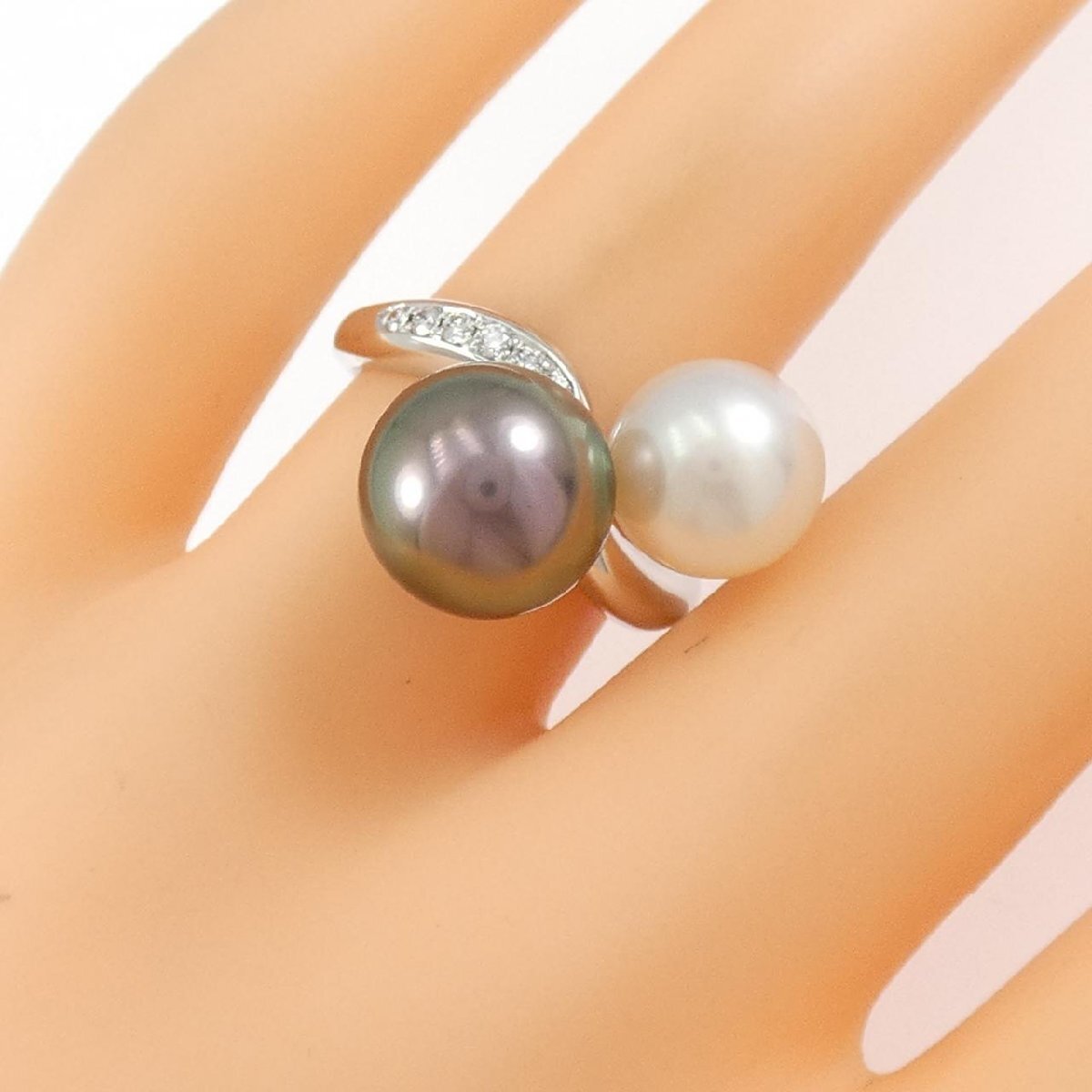 褐色の光を放つ落ち着いた色合いの黒蝶パールと、淡い光を放つ白蝶パールがあしらわれたリングです。