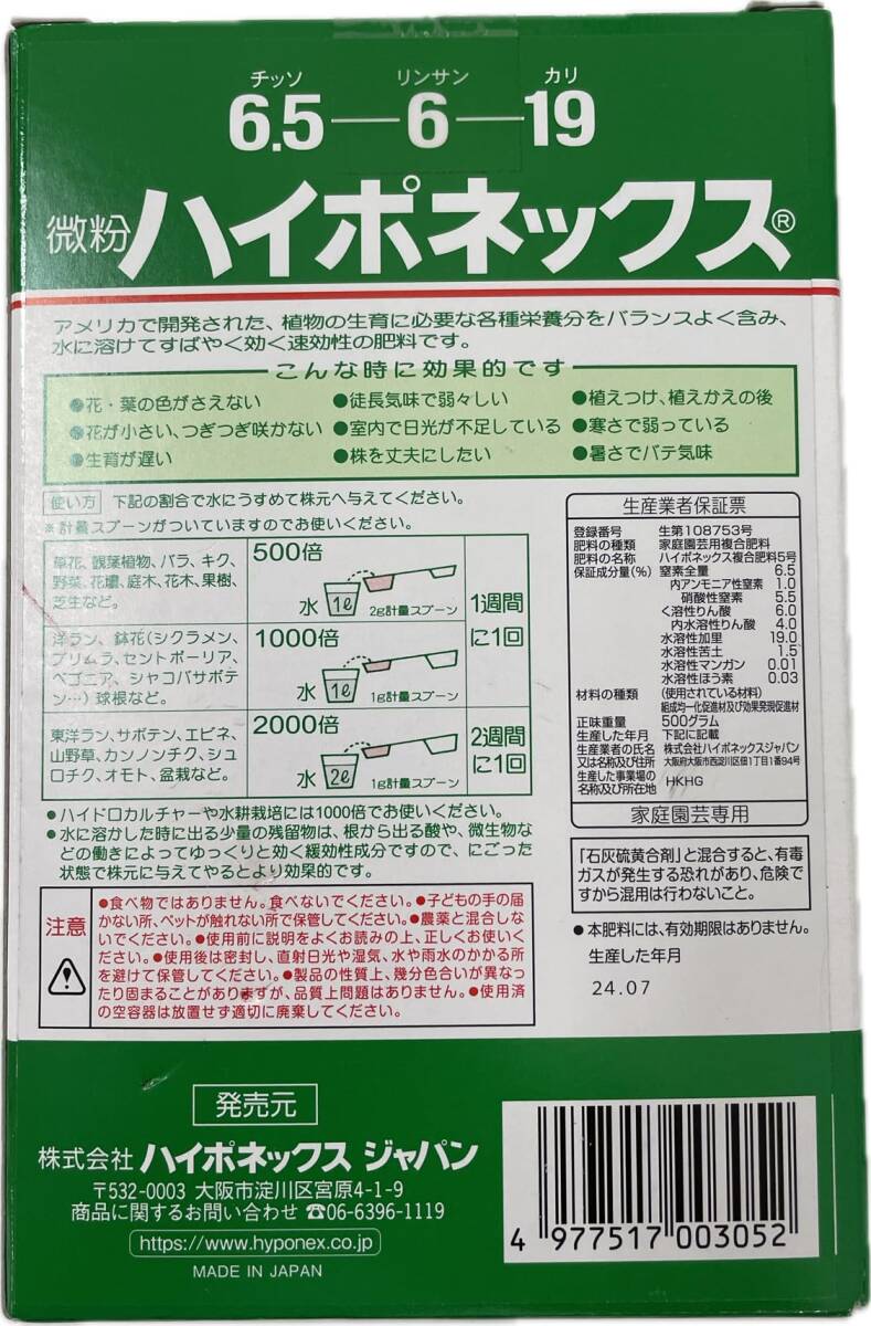 【特価セール】500g 微粉ハイポネックス 肥料 ハイポネックスジャパン