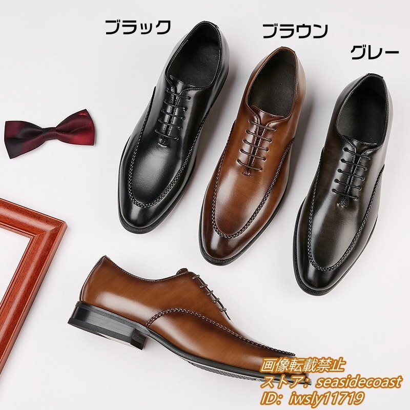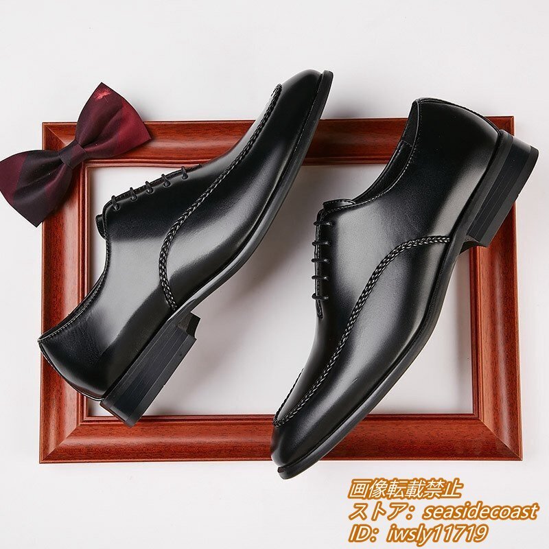 超美品◆メンズ レザーシューズ 本革 ビジネスシューズ ハンドメイド イギリス風 紳士靴 革靴 高級牛革 個性 通勤 上質 ブラック 25.0cm