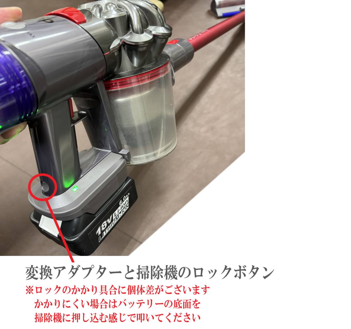 ・マキタの18Vシリーズバッテリーでダイソンの掃除機(V6/V7/V8)が