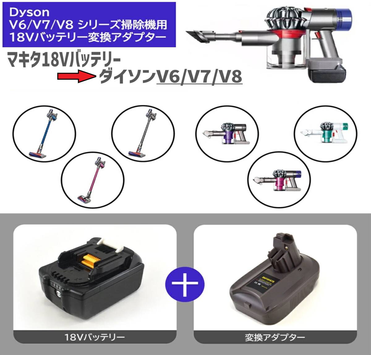 スピード発送 マキタ 18Vバッテリーで ダイソンの掃除機が使える 変換アダプター V6 V7 V8 掃除機専用 ダイソン 掃除機 バッテリー変換