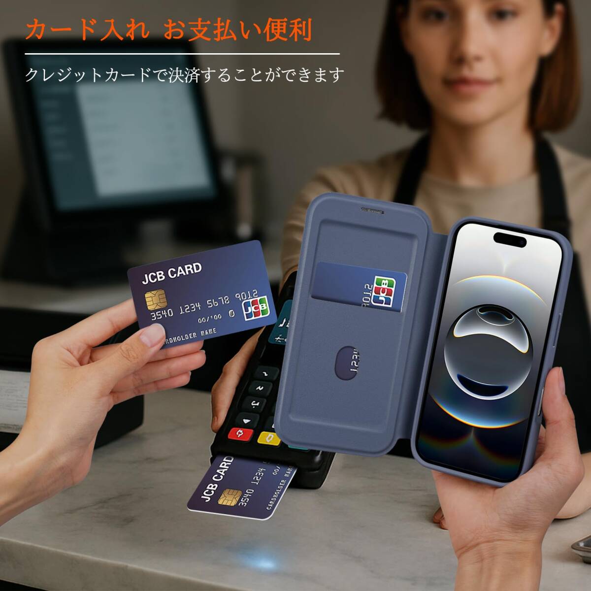 Rssviss iPhone 16 pro 用 ケース 手帳型 背面クリア MagSafe対応 スキミング防止 カード収納付き アイフォン 16 pro 用 手帳型ケース ワイヤレス充電対応 マグネット式 スタンド機能 通話穴付き 6.3インチ適応 ブルー