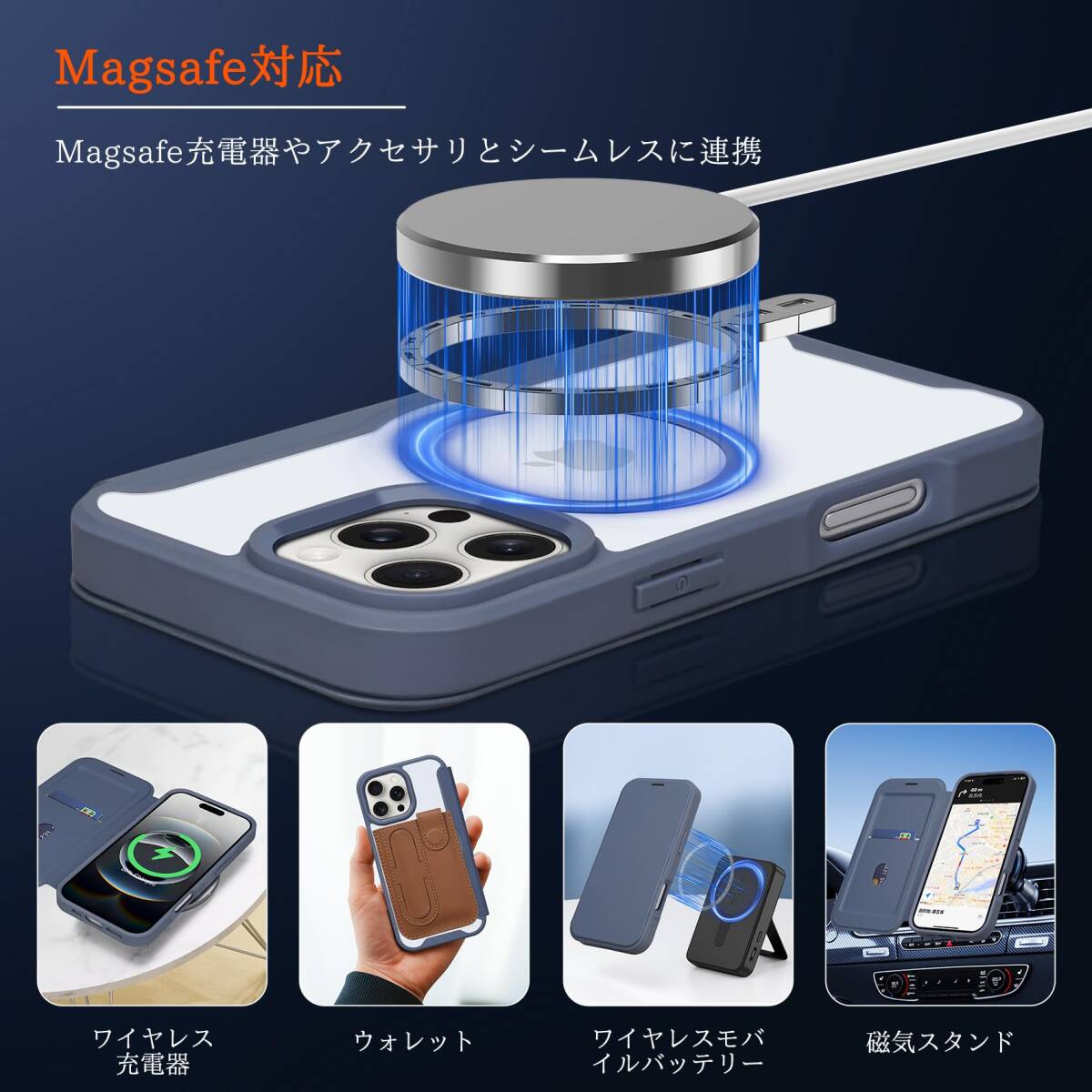 【MagSafe充電&ワイヤレス充電対応】MagSafe対応マグネット内蔵で、ケースをつけたままワンタッチで正確な位置に吸着。Qi規格のワイヤレス充電にも対応し、手間なく簡単に充電可能。デスクや就寝時の充電にも便利。