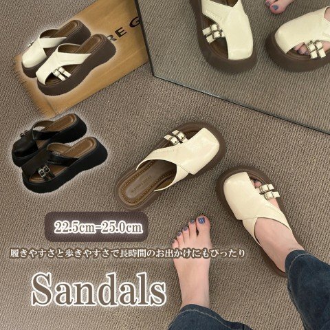 ・シンプルなデザインで、様々なコーディネートに合わせやすいの厚底サンダル。