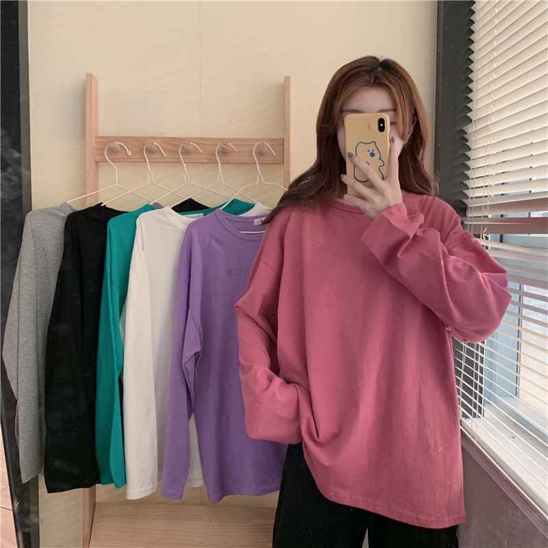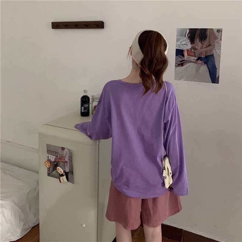 大人可愛い トレンド ベーシック Tシャツ ラウンドネック ロンT 日常 着回し M グレー