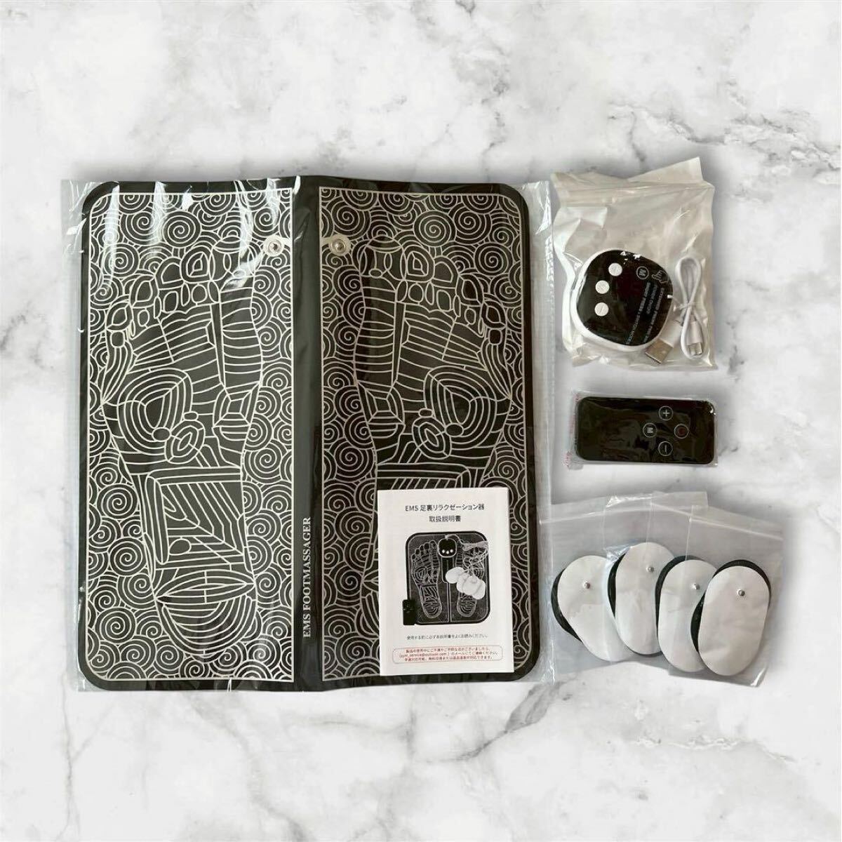 セット内容: ems 足 マット本体*1、リモコン*1、全身用EMSパット*8、EMSパットに接続用コード*1、Tpye-C充電ケーブル*1、日本語説明書*1