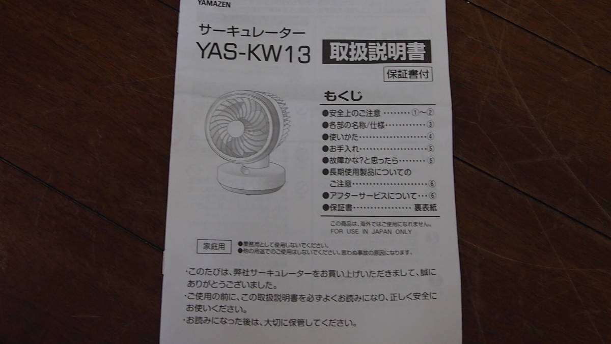 | 中古品☆YAMAZEN☆山善サーキュレーター☆YAS-KW13☆首振り機能☆2020年製☆説明書有☆509S4ーB12735 | |