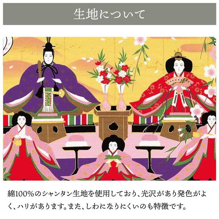 ■綿100%のシャンタン生地を使用しており、光沢があり発色が良く、ハリがあります。また、しわになりにくいのも特徴です。