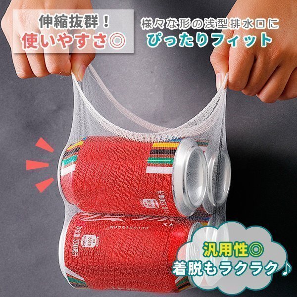 ストッキングタイプ 伸縮性抜群のストッキング素材で、十分な伸縮性があるので、丸い、三角など様々形の浅型排水口にぴったりフィットして簡単に取り付けることができ、汎用性が高いです。