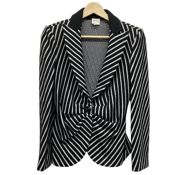 アルマーニコレッツォーニ ARMANICOLLEZIONI サイズ38 S - 黒×ライトグレー レディース 長袖/ストライプ/肩パッド/春/秋 ジャケット