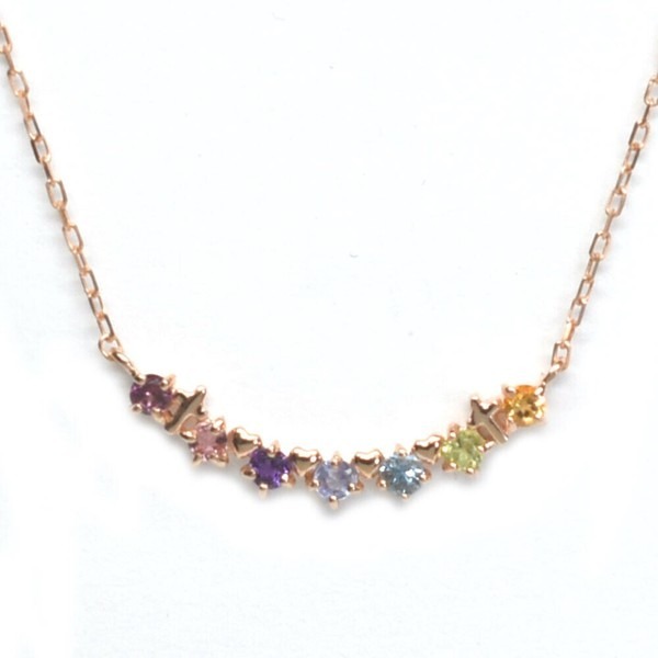 【10金ピンクゴールド】7色天然石アミュレットネックレス K10
