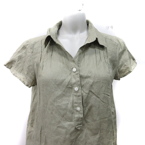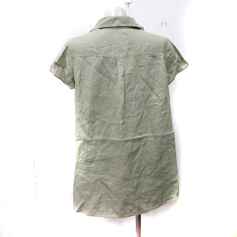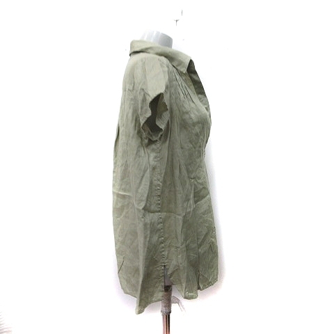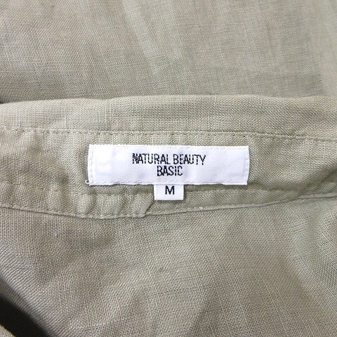 ナチュラルビューティーベーシック NATURAL BEAUTY BASIC シャツワンピース ミニ チュニック 半袖 麻 リネン M 緑 カーキ /YI レディース