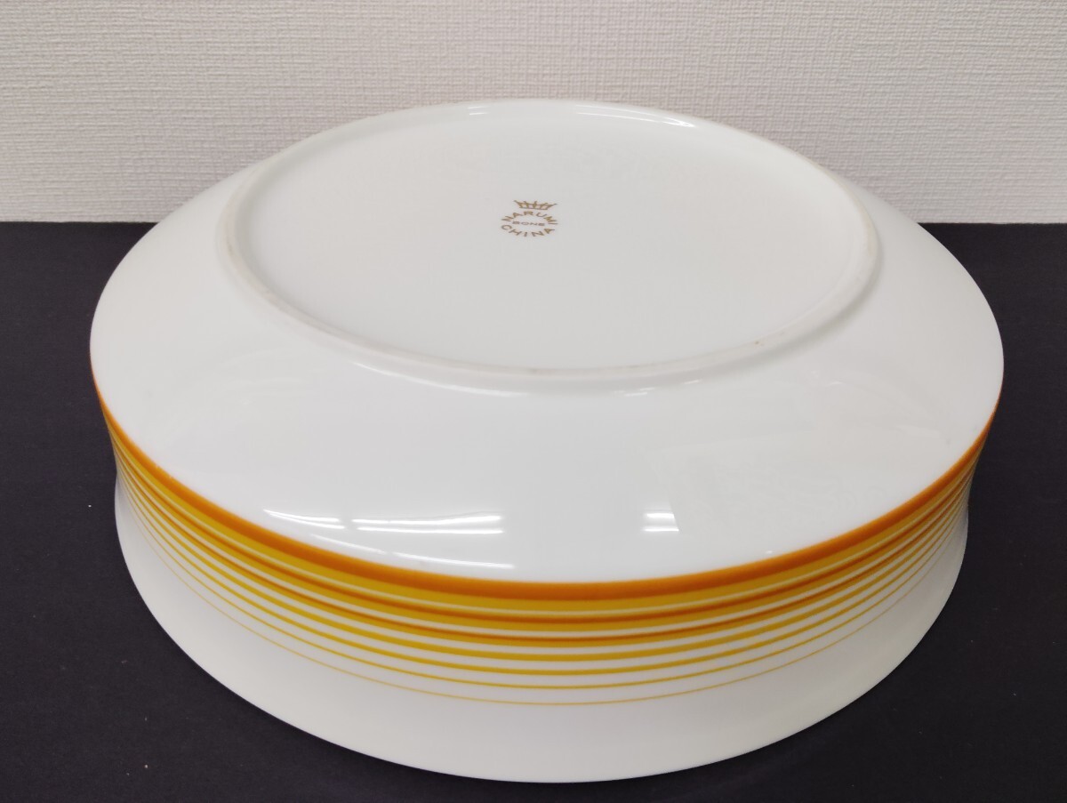 ★即決200円★ナルミ NARUMI 大鉢 深皿★白×オレンジストライプ★直径23センチ★