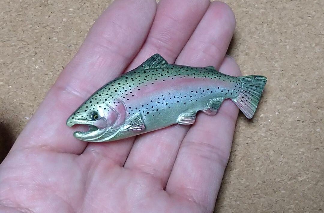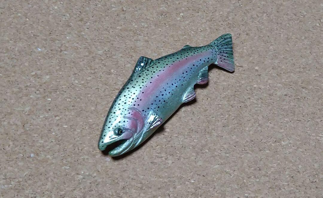 ハンドメイドになります。極太 ニジマス 虹鱒 ブローチ バッジです。
