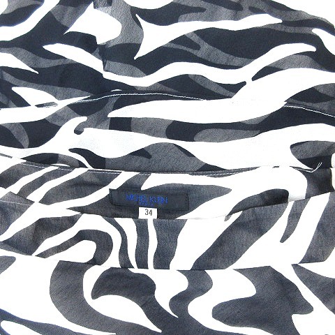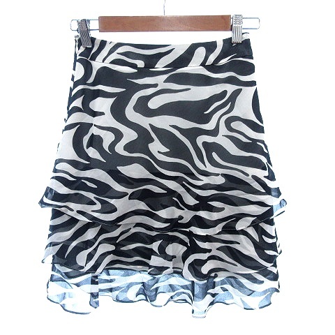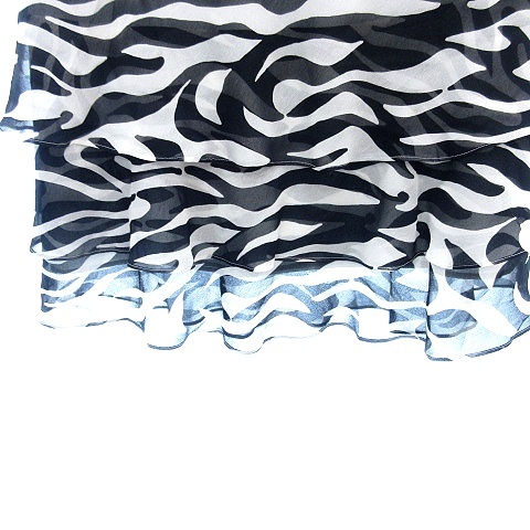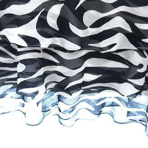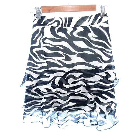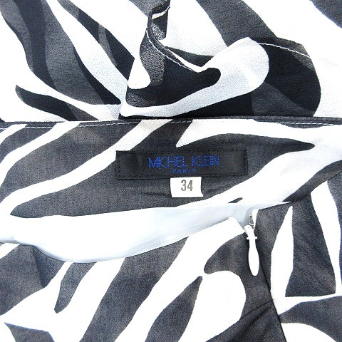 ミッシェルクラン MICHEL KLEIN フレアスカート ひざ丈 ティアード ゼブラ柄 34 XS アイボリー 白 ホワイト /AU レディース