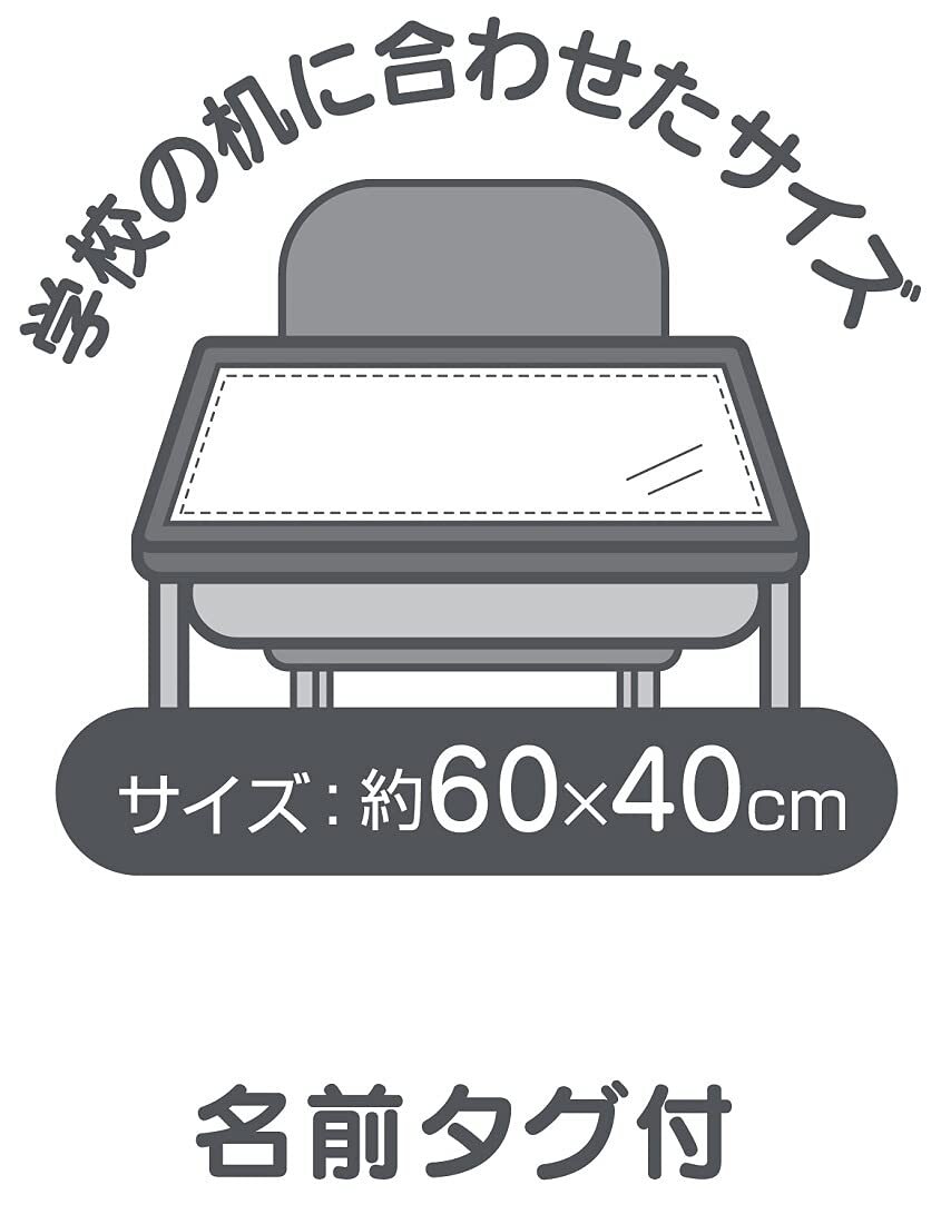 説明 テーブルの汚れを防ぐマット大き目サイズ 学校でも使えるように机に合わせたサイズのテーブルマット 綿100%素材、裏面には名前タグ付ランチョンマット 表側はやわらかフリース素材、滑り止め仕様