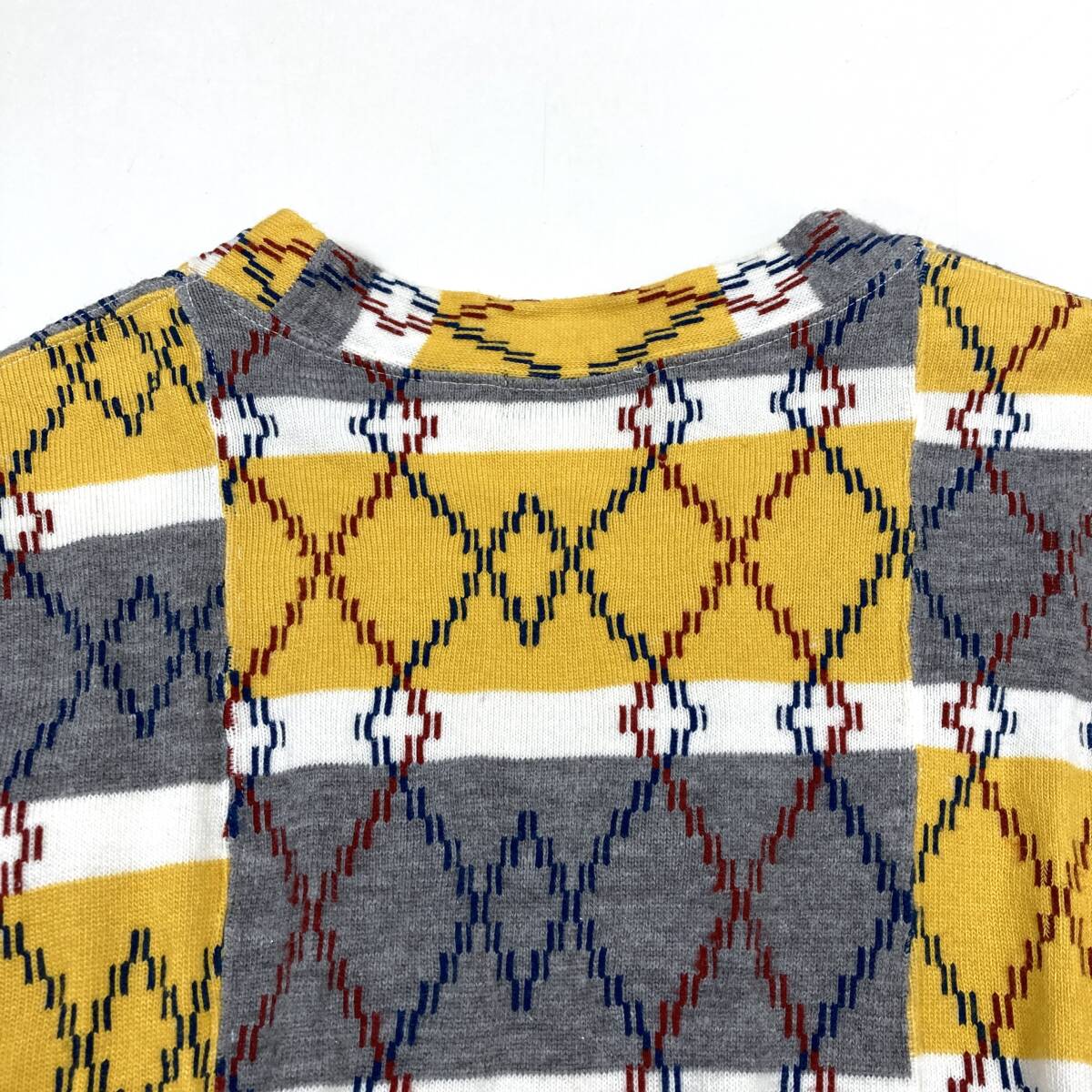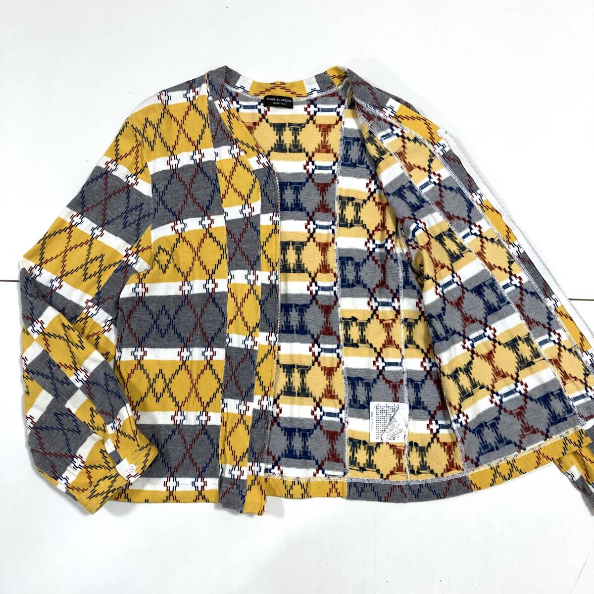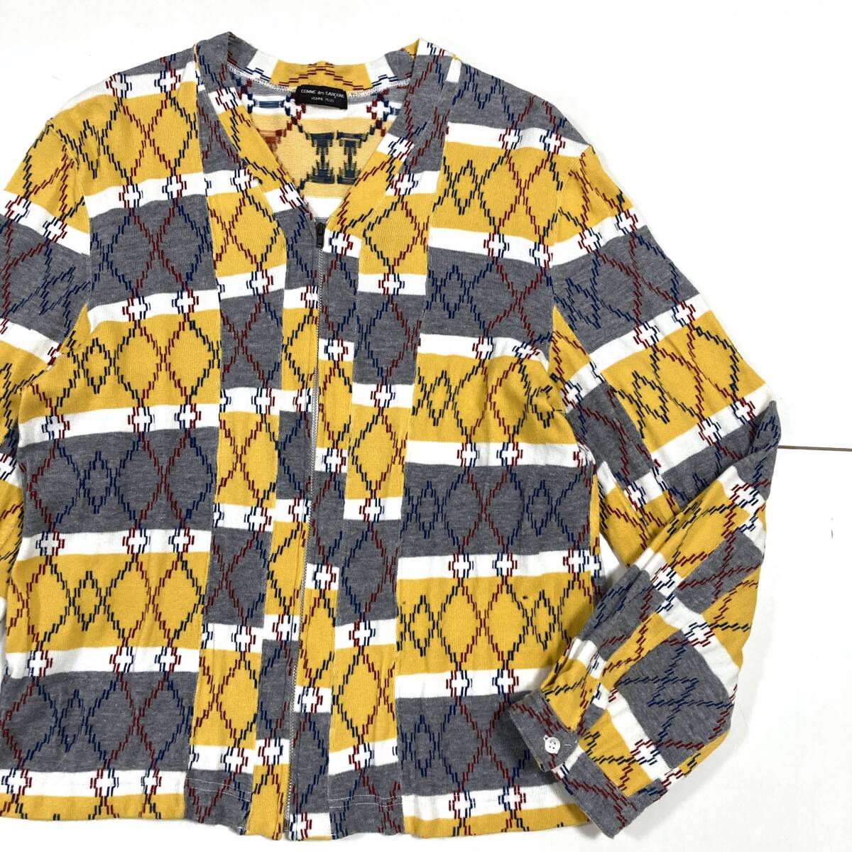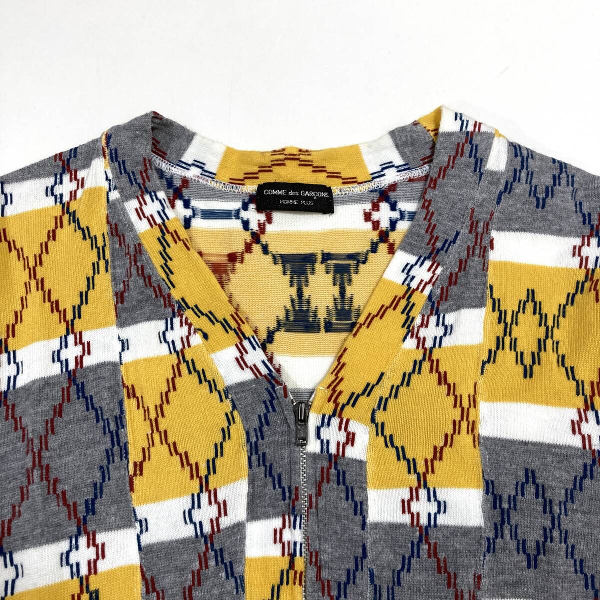 AD1997 COMME des GARCONS HOMME PLUS ずらし コットン ニット ジップ カーディガン 総柄 イエロー × ホワイト × グレー