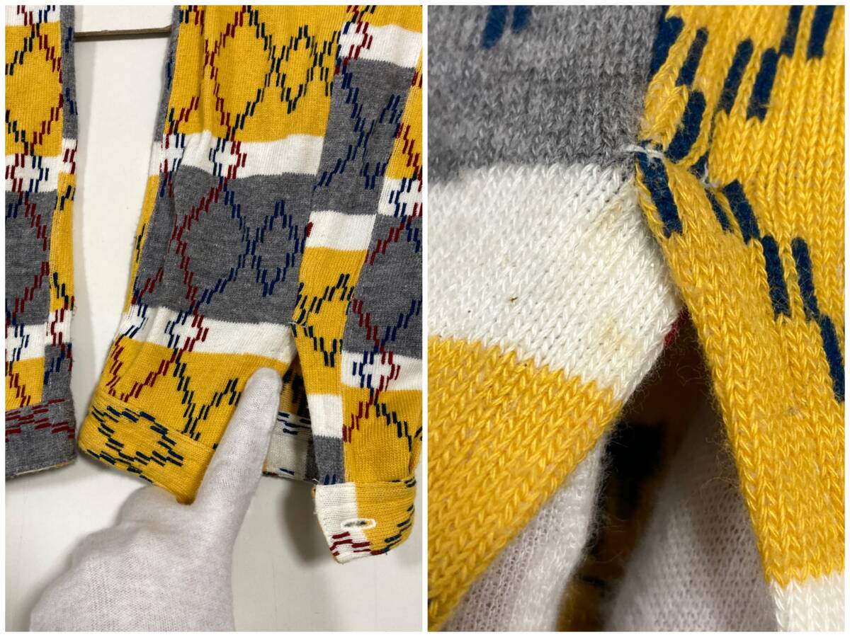 AD1997 コムデギャルソンオムプリュス ずらし コットン ニット ジップ カーディガン 総柄 黄系 HOMME PLUS ブルゾン archive 5060725