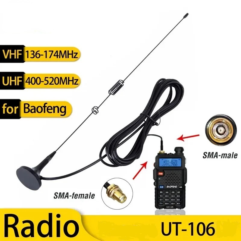 [UT-106 マグネット基台付 モービルアンテナ] SMA-F 車載アンテナ 144/430MHz VHF/UHF デュアルバンド Baofeng Quansheng 輸入ハンディ機に