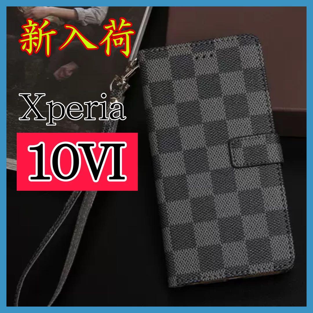 大人気 Sony Xperia 10Ⅵケース 手帳型 黒色 チェック柄 高質PUレザー 大人気 高級感 耐衝撃 ソニー エクスペリア 10Ⅵカバー