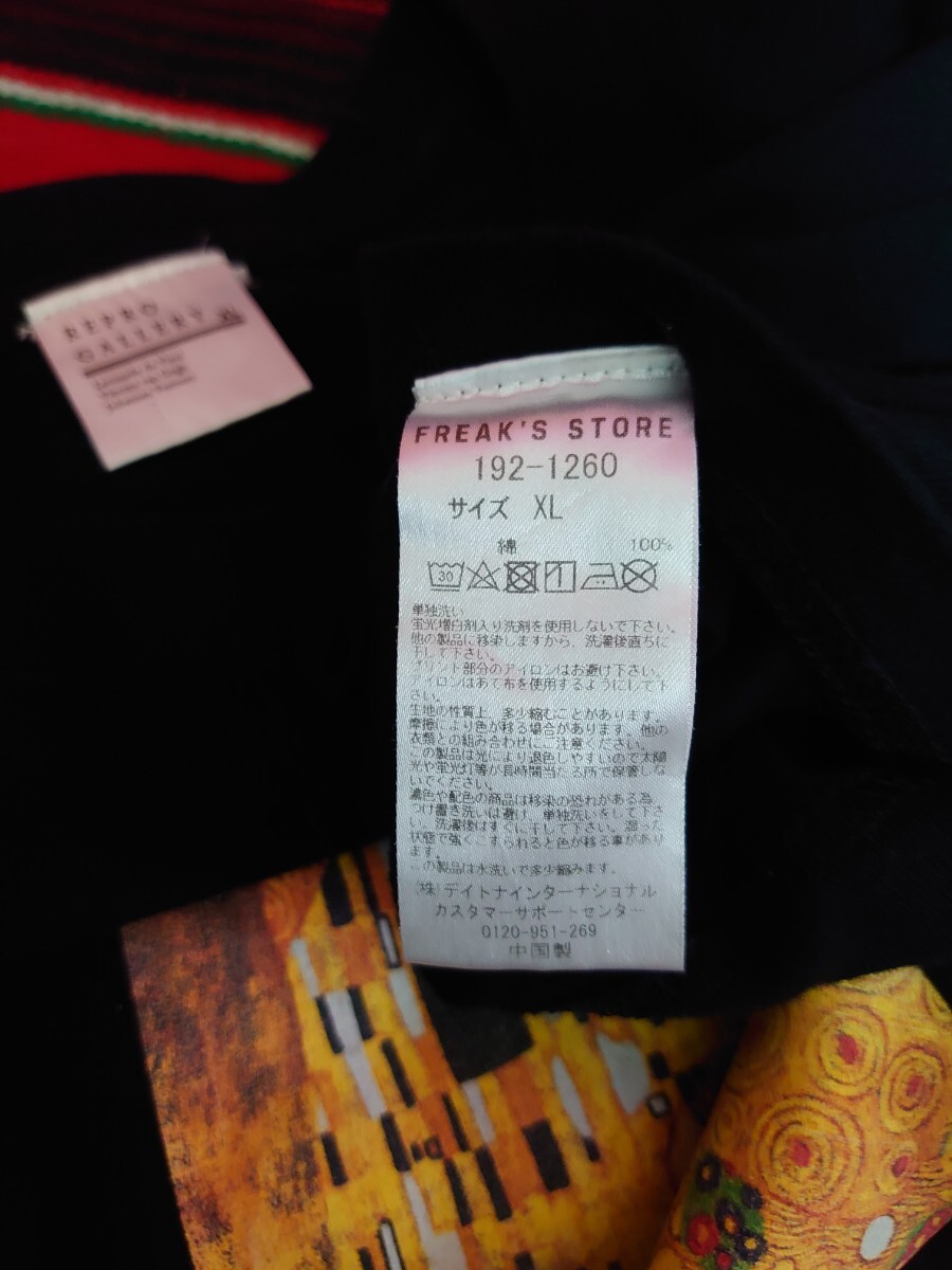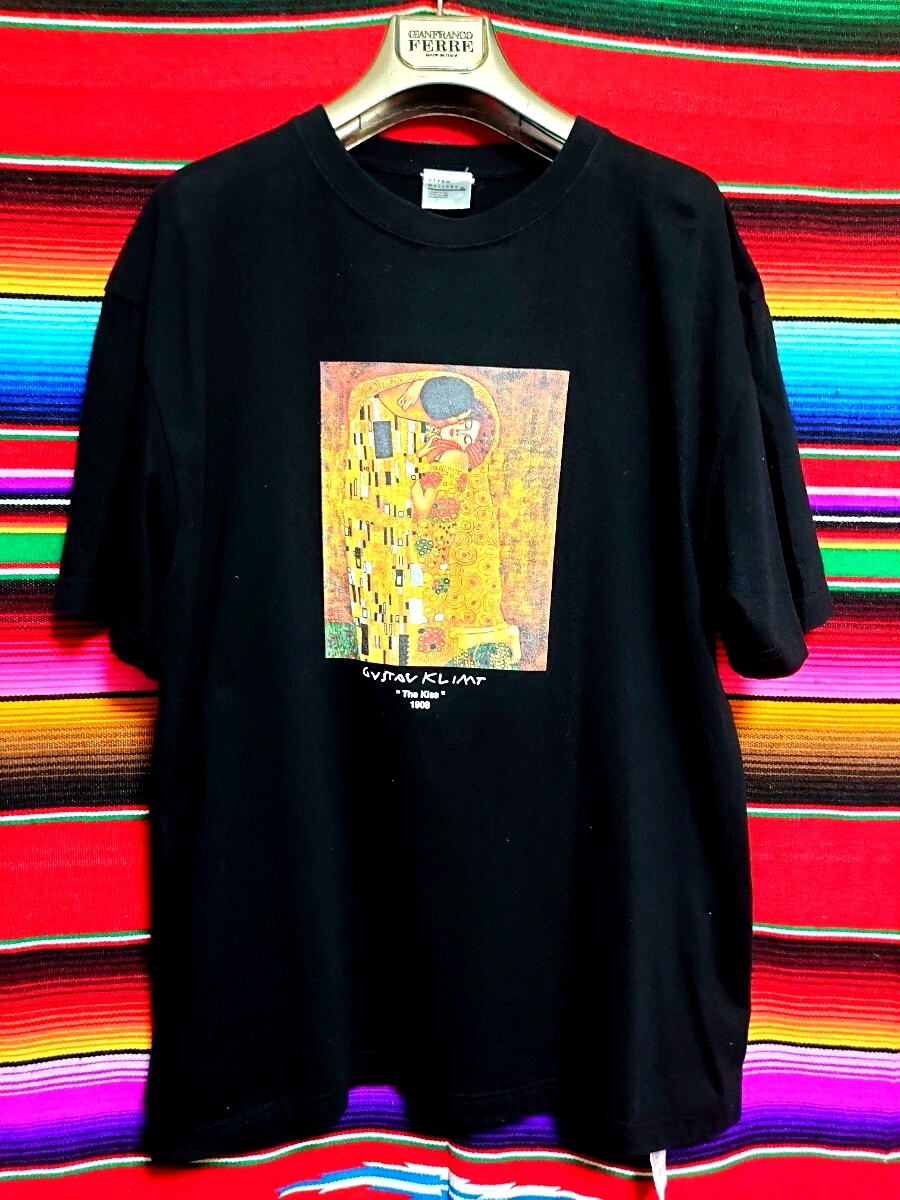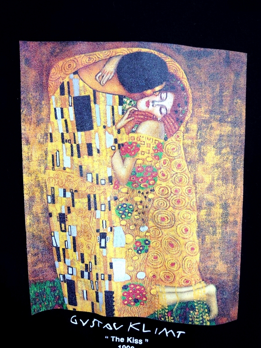 FREAK’S STORE フリークスストア REPROGALLERYコラボ クリムトThe KISS 1908 プリントTシャツ XLサイズ ブラック ゴールド 名画「接吻」