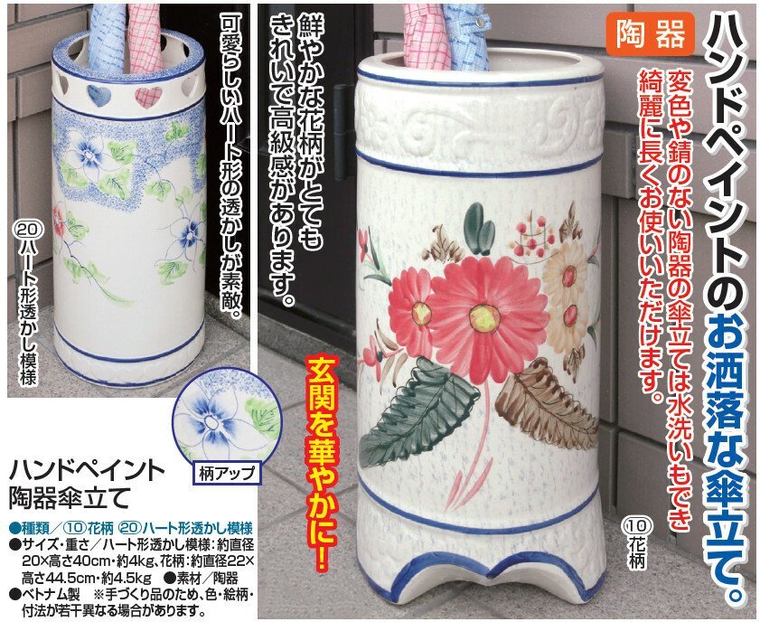 | 即決可@新品ハンドペイント陶器傘立て/ハート形浮かし模様 | ||||||||||||