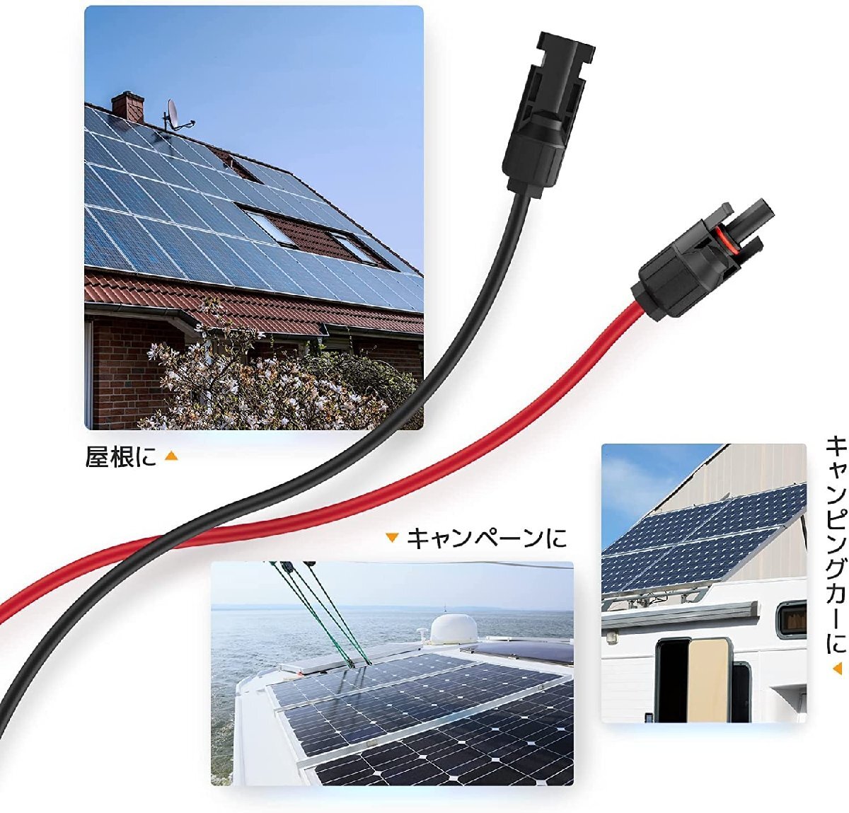 【仕様】多種のサイズを選択可能:1m、3m、5m、10mなど*2本 12AWG 【仕様】サイズ:4mm ソーラー延長ケーブルは、両端にオスとメスの硬質PPOプラスチック1.5KV50AIP67PVコネクタを備えた1500V錫メッキ銅ソーラーケーブルでできています。錫メッキ純銅材に採用しており、導電性向上できます。