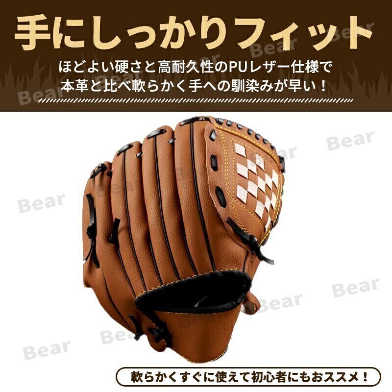 野球 グローブ 大人 12.5インチ ブラウン 軟式 ソフトボール 兼用 高校生 右投げ 右手 右利き レザー 運動 草野球 オールラウンド 練習 茶