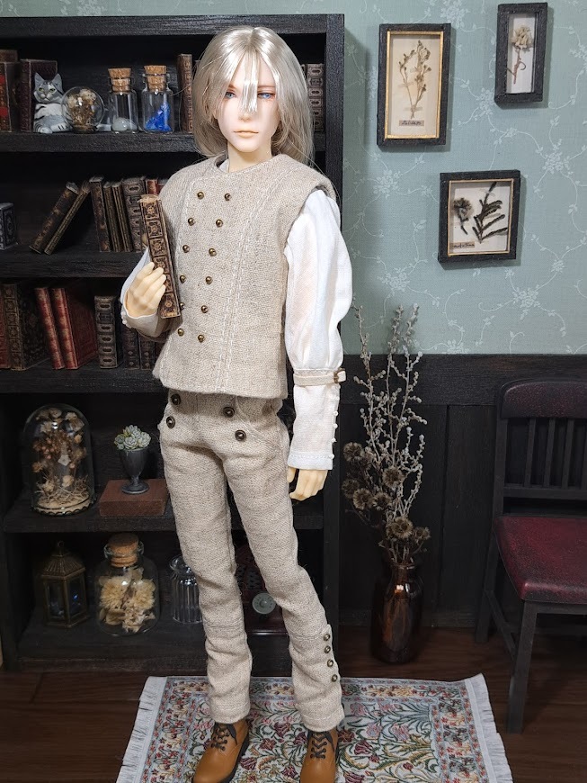 スボン:ベストと同素材、後ろスナップ留。着用の際は足首パーツを外してください。