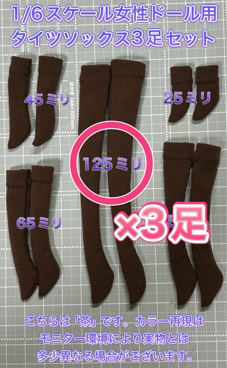 リカちゃん、ジェニー、ネオブライス、アイシードール 、オビツ27女性ボディ、ハッシュタグボディなどが着用出来る、薄手の化繊ソックス長さ違い、平置きで約125ミリの3足セットです。