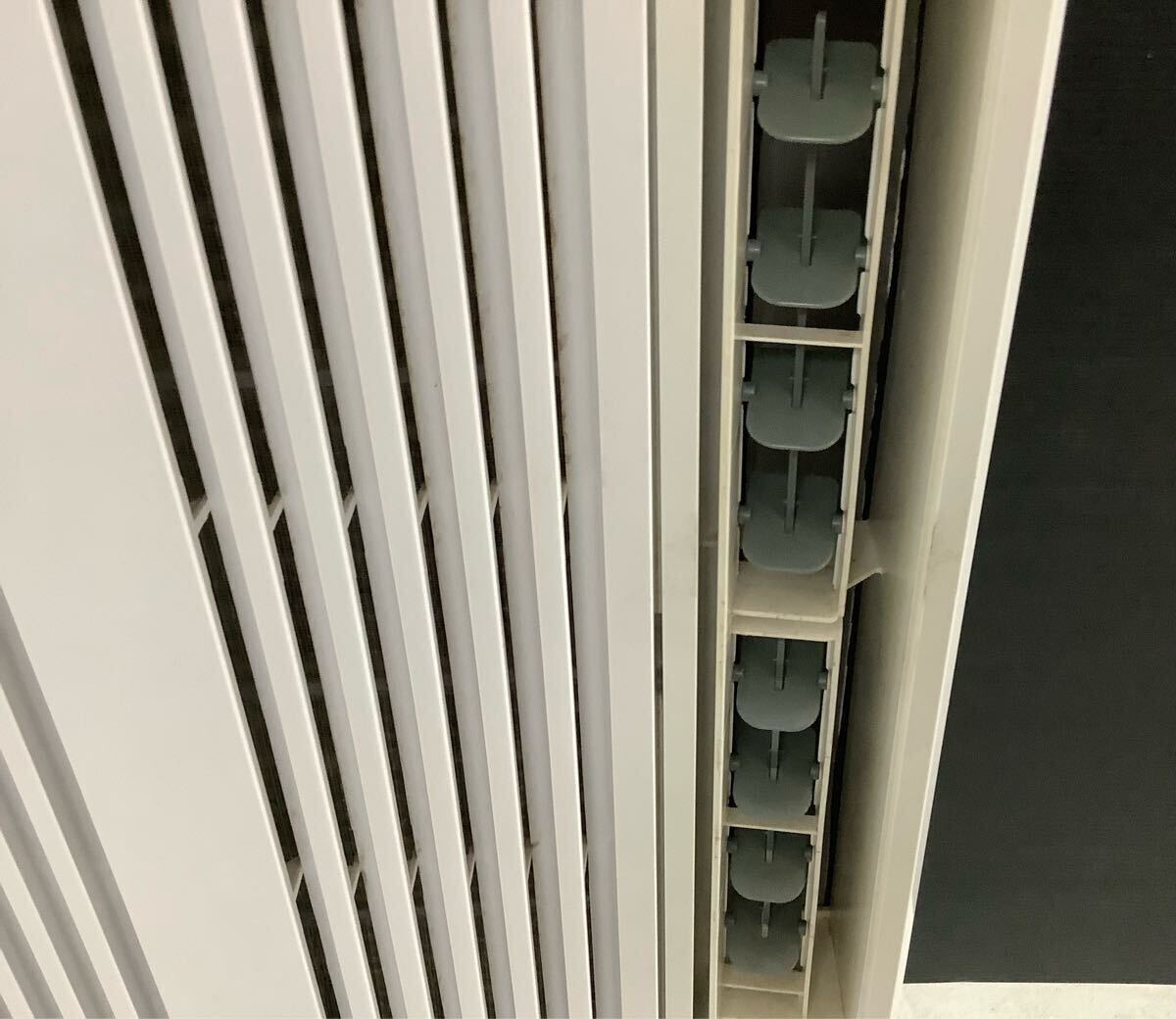 ・窓枠と設置部分の隙間を覆うパッキンの汚れ、変色あり。