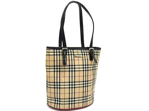1円 BURBERRY バーバリーブルーレーベル ノバチェック ナイロンキャンバス トートバッグ ショルダー ブラウン系×ブラック系 BP4770