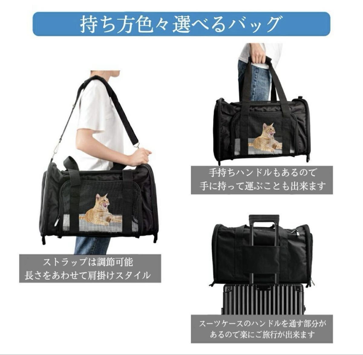 #ペットキャリーバッグ #猫キャリーバッグ #通気性抜群 #犬キャリー #ショルダー #折りたたみ #手提げキャリーバッグ #マット付きキャリー #ブラック #バッグ