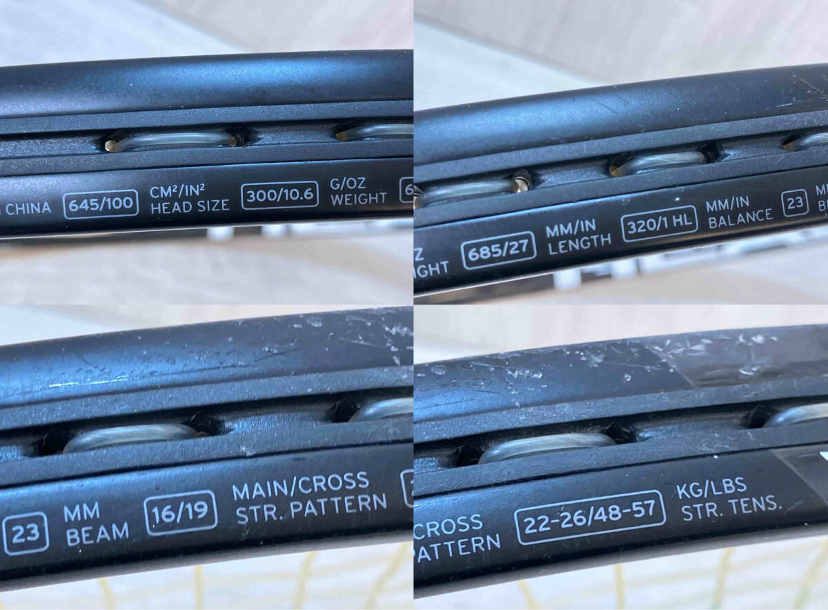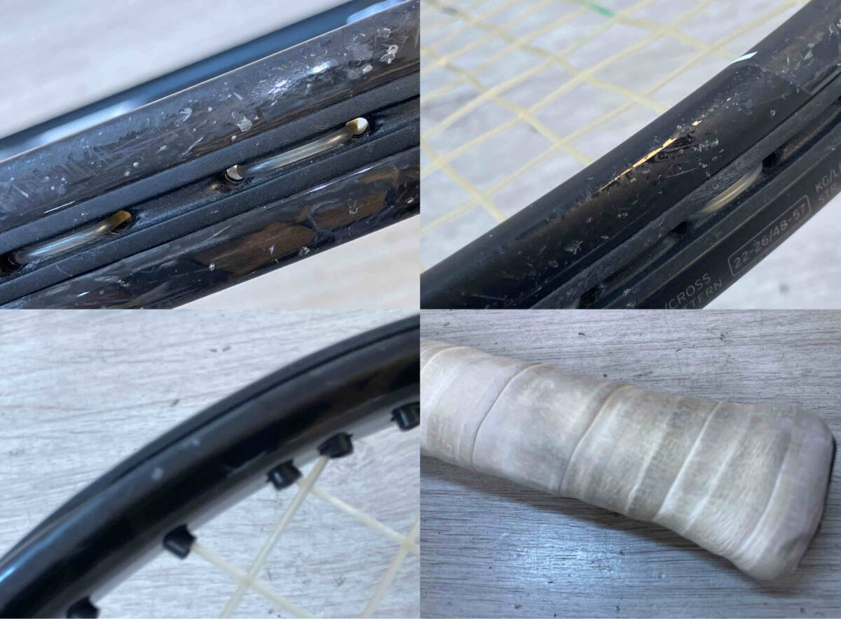 | ラケット情報 付属品は画像のものが全てです グリップ:3 フレーム:100 総重量:約320g ガット:あり グリップ汚れ:あり(大) フレーム擦れ:あり |