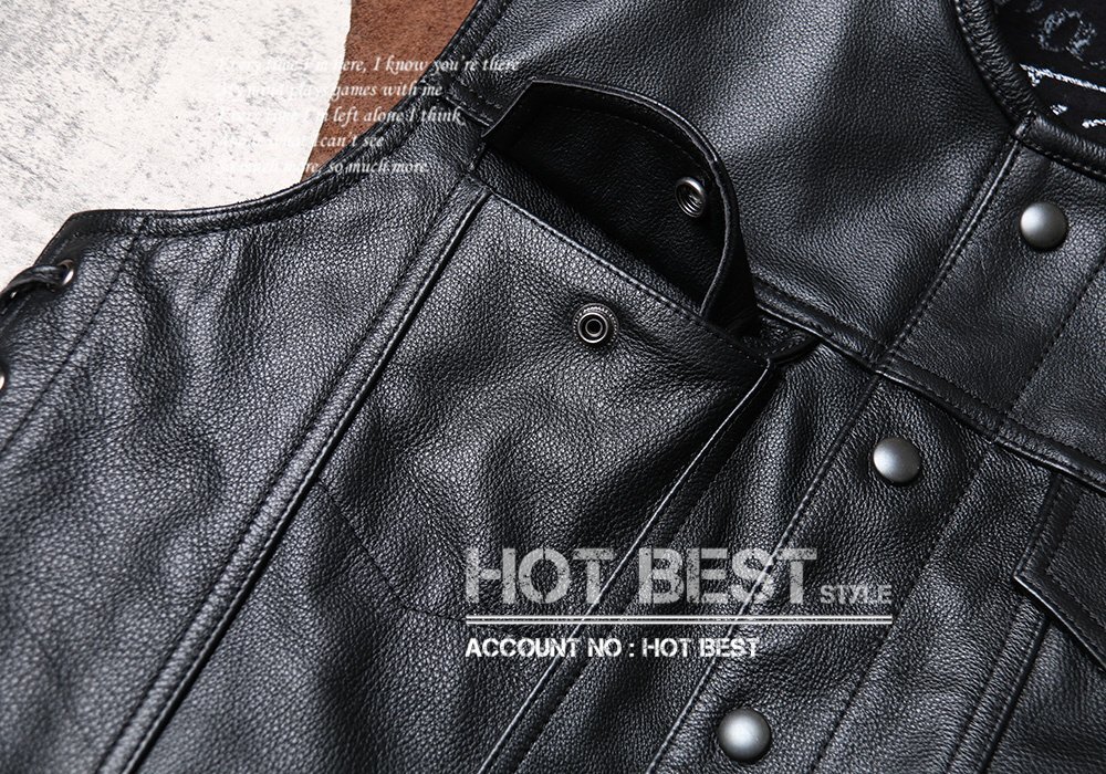 1.0mm厚の上質なカウハイド(牛革)を使用した、本格仕様のレザーベスト。