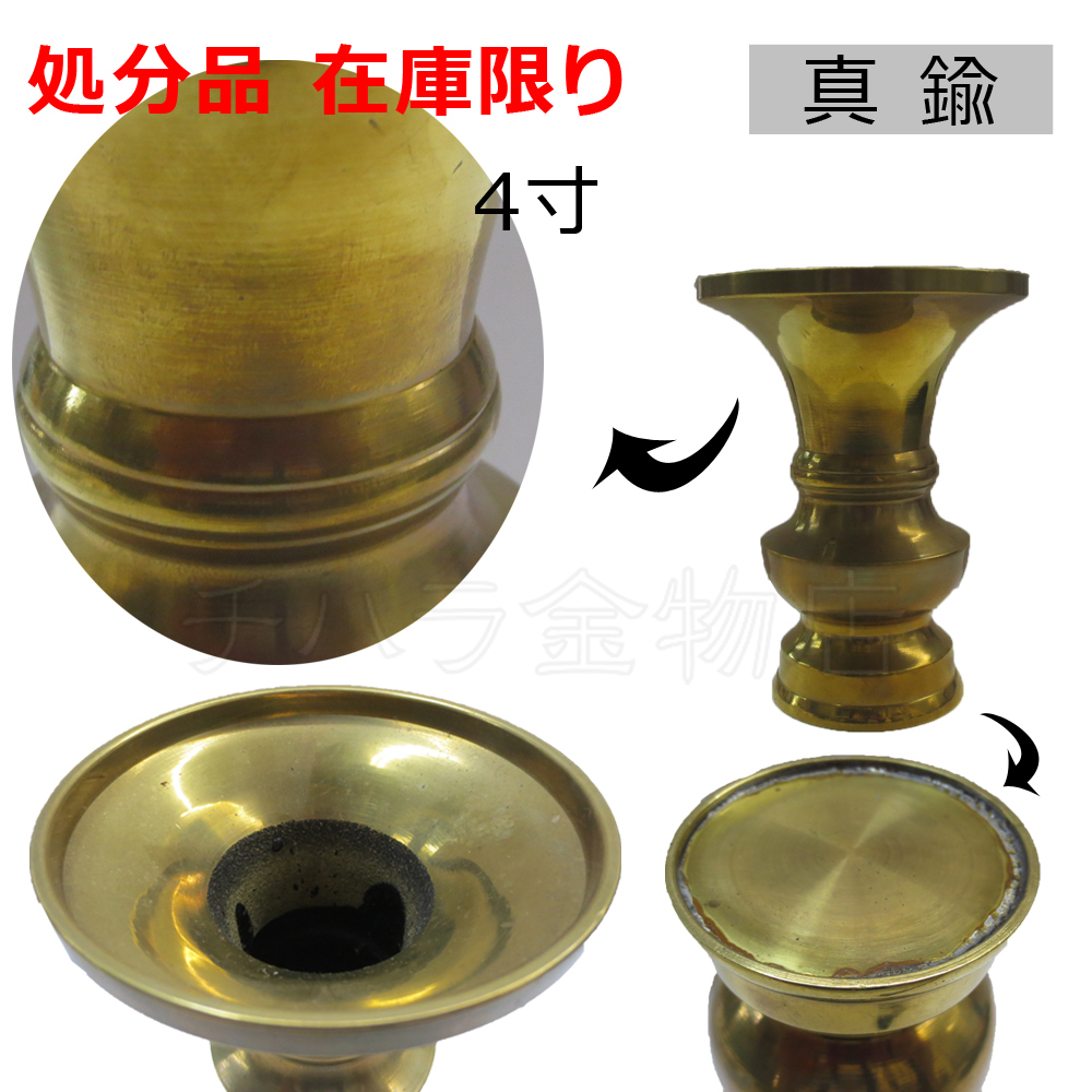 限定品1点限り 真鍮 花立(単品)4寸 高さ12.5cm/幅(口の直径)9.3cm 7寸常花サイズ 華瓶 仏具用品