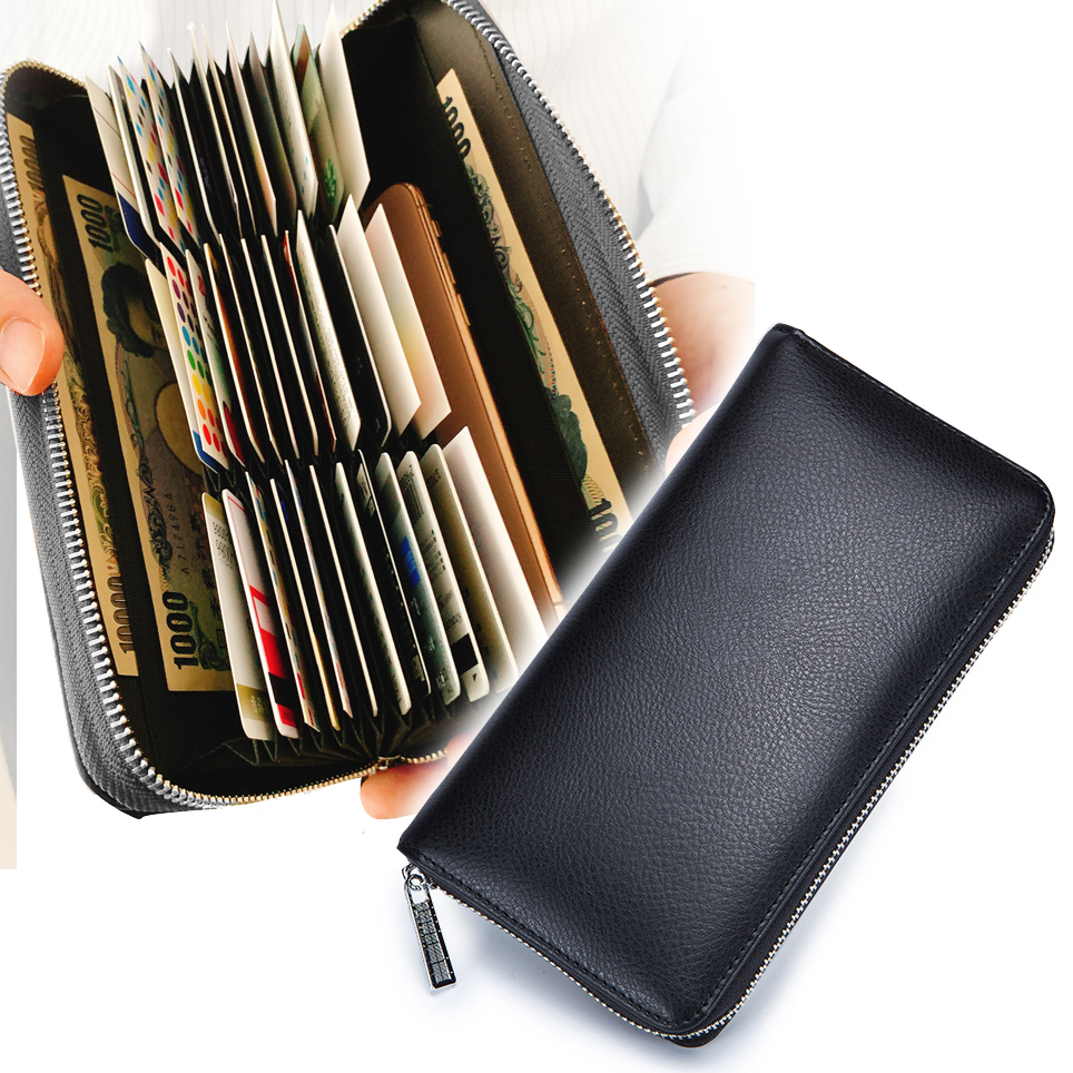 【送料無料】 長財布 メンズ 財布 ラウンドファスナー 大容量 牛革 黒 ブラック カード大量収納 レザー カードケース 72枚収納可能