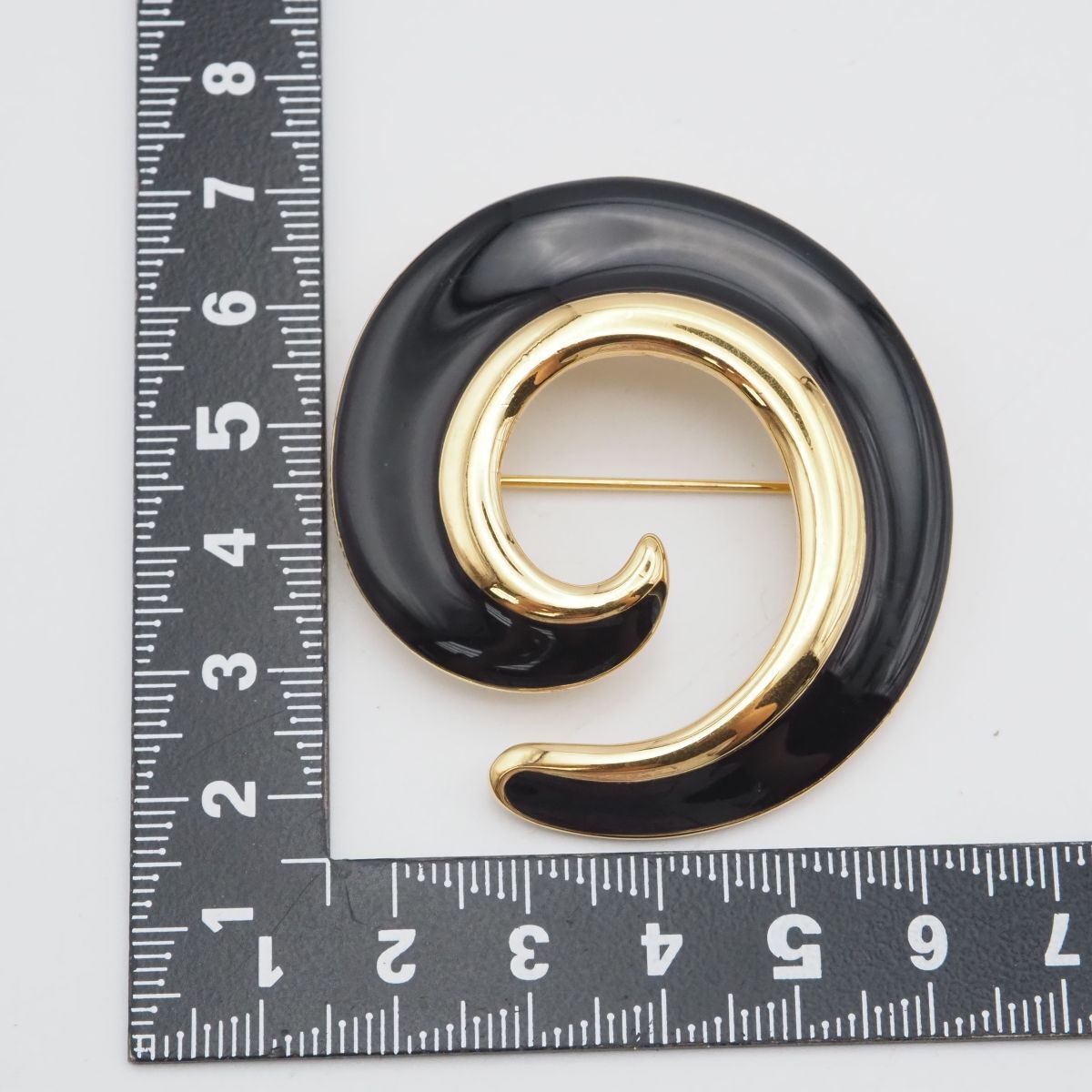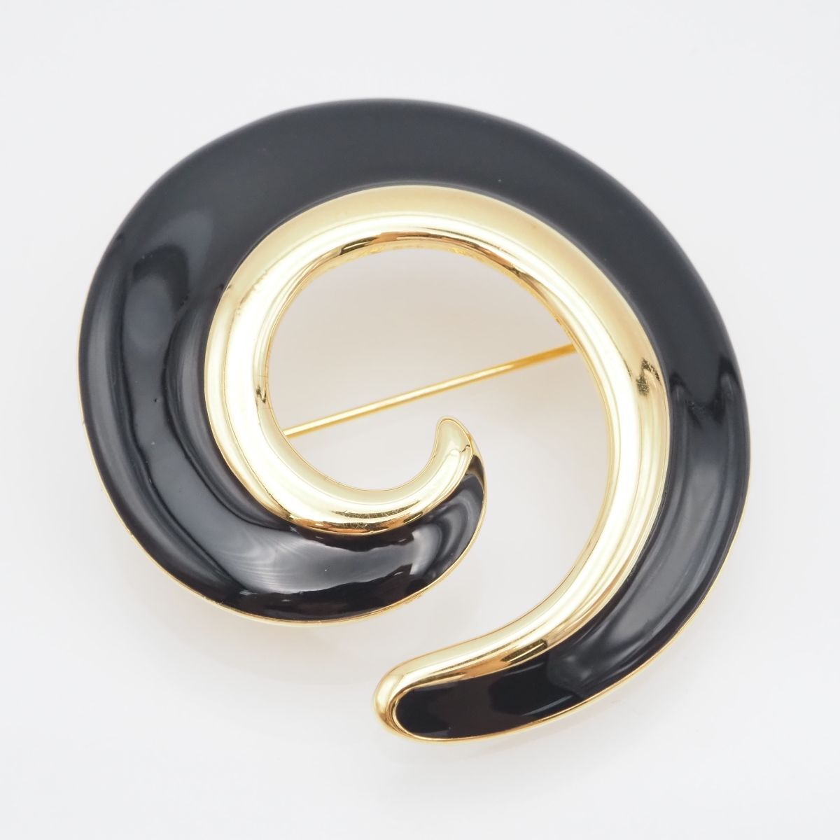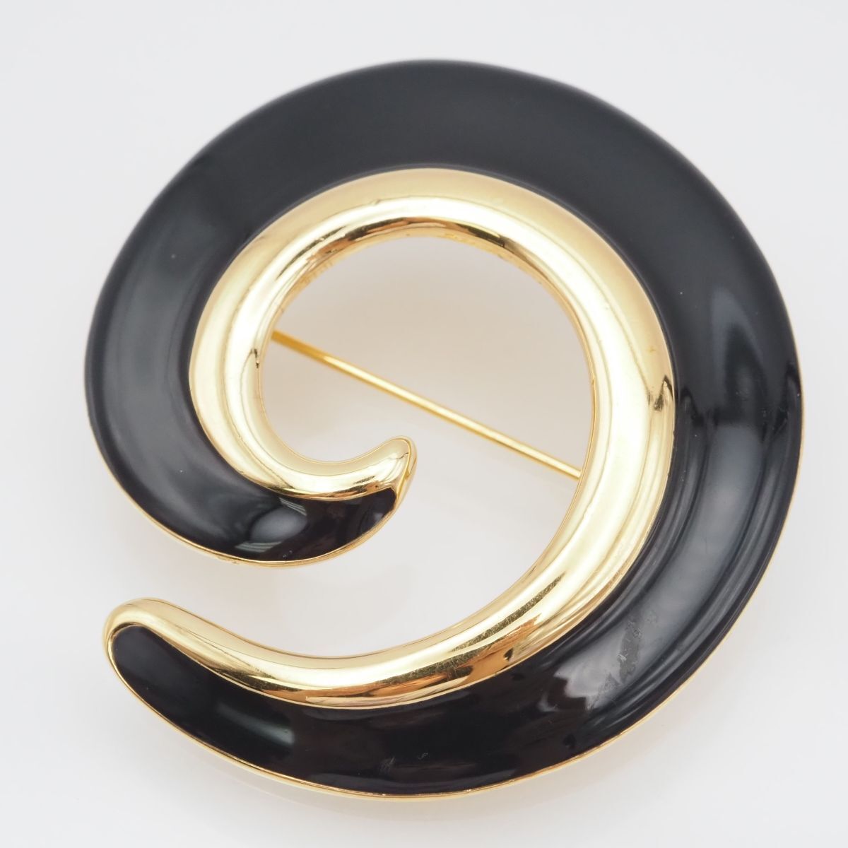 F078 MONET モネ ブローチ ブラックエナメル ゴールド デザイン
