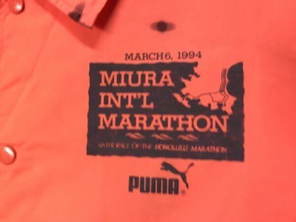 プーマ PUMA 三浦国際市民マラソン 1994 ホノルルマラソン姉妹大会 コーチジャケット フード付き メンズ ナイロン100% 薄手 F オレンジ です。