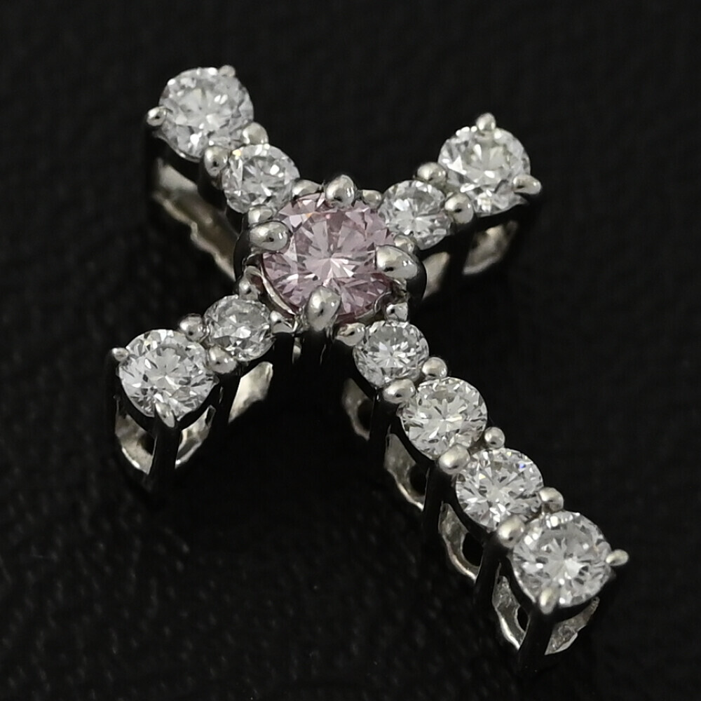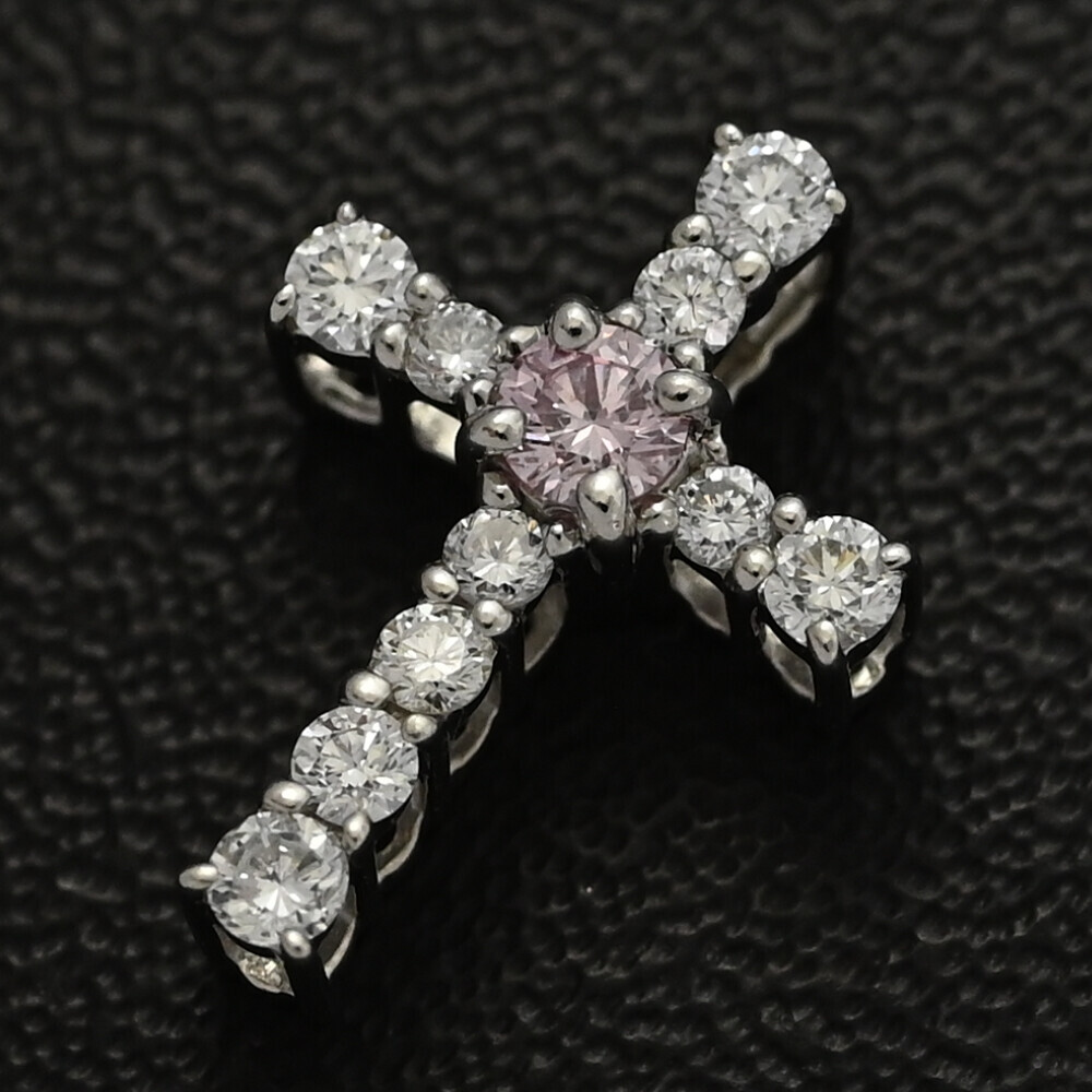 0.052ct/FD:0.1ct/クロスモチーフ・ピンク・ダイヤモンド・ダイヤモンドペンダントトップ/Pt900-1.0g/ピンク 翌日配送可 お問合せ番号 ■589760 (M56A2972L) | |