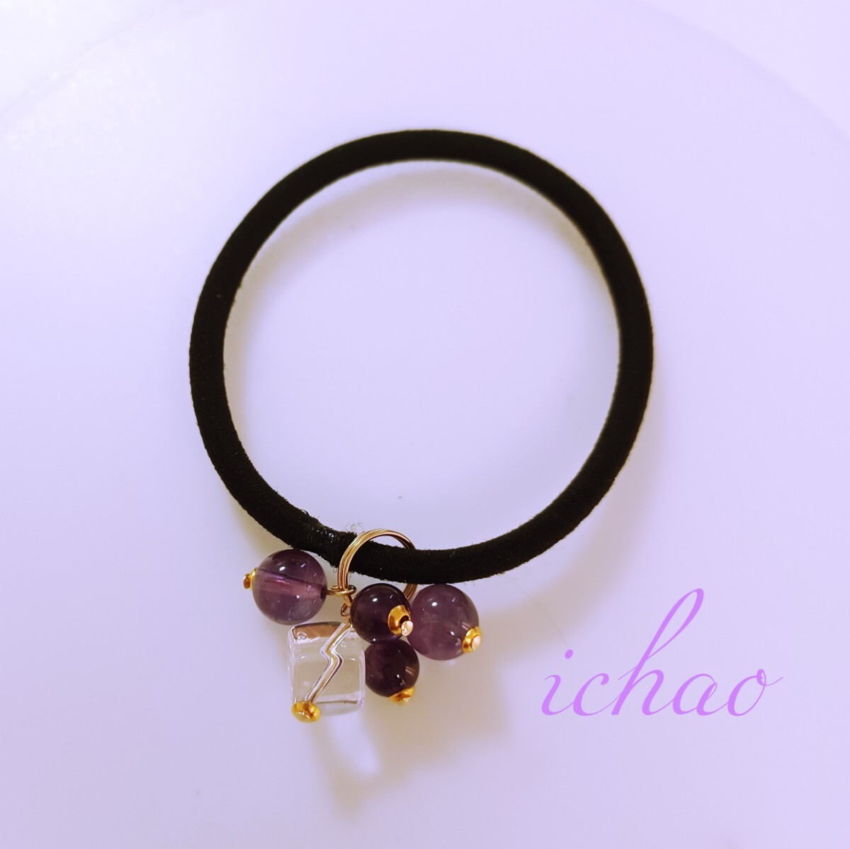 推しカラーはパープル☆天然石アメジストと水晶を組み合わせた紫色たくさんのヘアゴムです♪