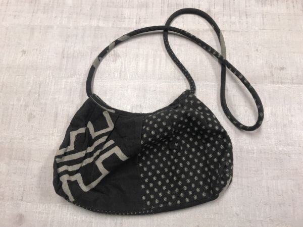 衣 KINU 和柄 和物 襤褸 ボロ オリエンタル モード レトロ ショルダー 斜めがけ 肩がけ バッグ カバン 小物入れ レディース グレー です。