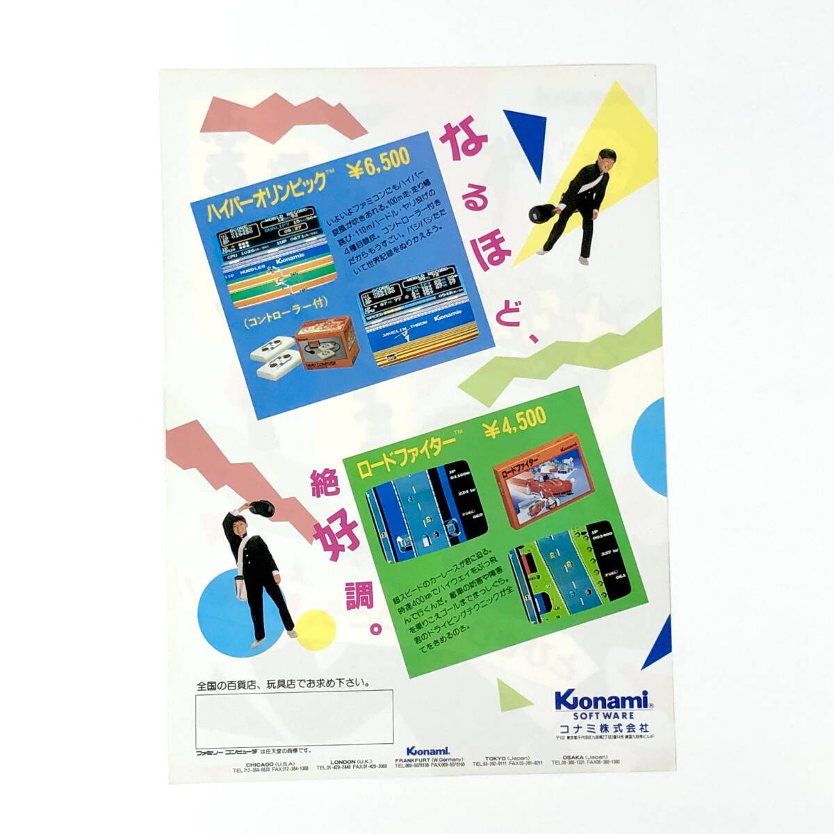 【送料無料】 ファミコン ハイパーオリンピック / ロードファイター A4サイズ チラシ 痛みあり コナミ 80年代 当時物 フライヤー 広告
