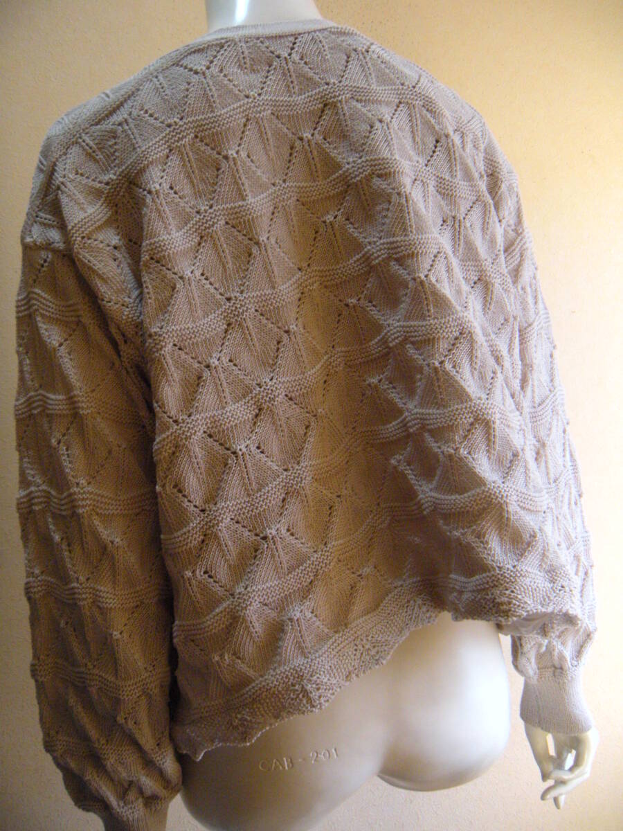 Color(色):画像参照 Size(表記サイズ):画像の表示参照 肩幅cm、身幅60cm(身幅が広いデザイン)、着丈45cm、袖丈cm (平置きで計測できる項目のみ記載) Material(素材):画像の表示参照 Condition(状態):着用感多少、目立つ程度は見られず、問題なくお使いいただけます。 A note(備考):前ボタン全開です。 注)画像の白い丸はフラッシュの加減で、汚れなどではございません |