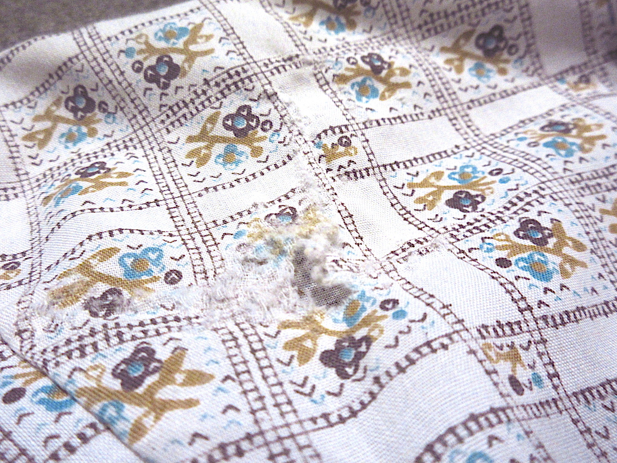 右袖に穴、ほつれ、生地に若干の着用感