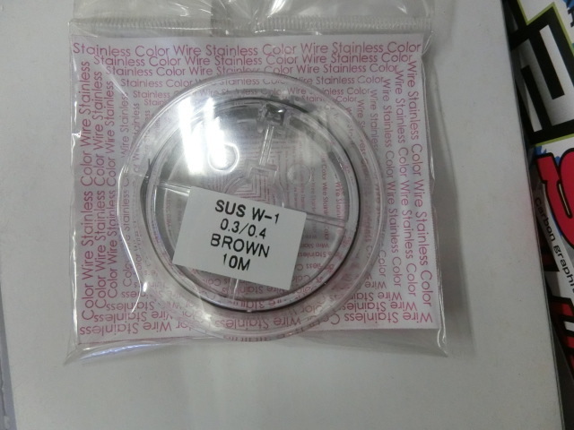 ステンレスカラーワイヤー ブラウン 10m巻 0.30/0.40 定価280円(税別) この商品はネットショップでも併売しているため、完売した場合は納品できない場合があります。